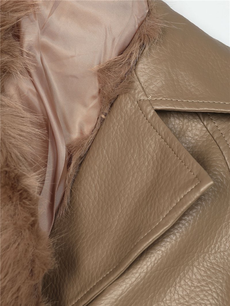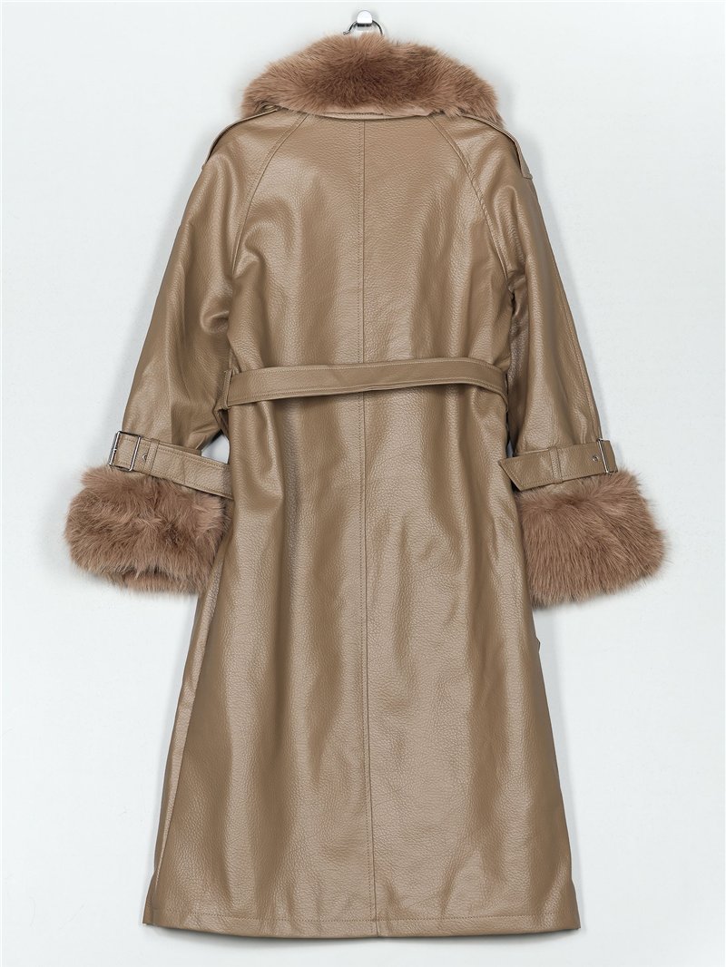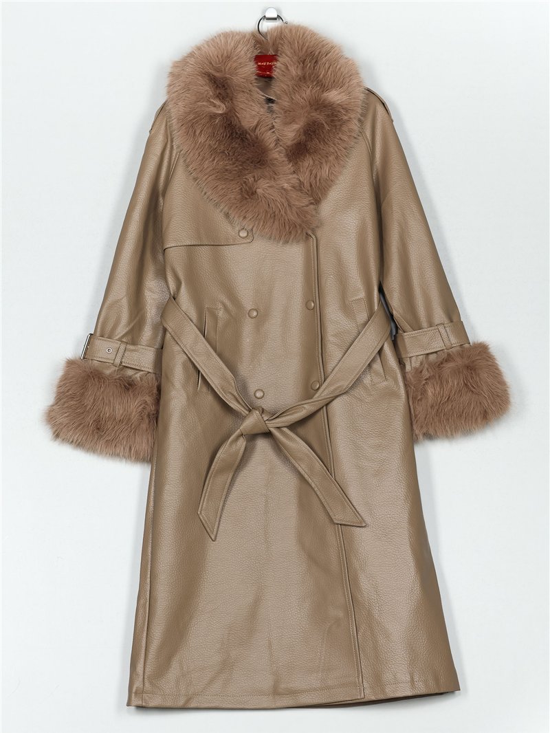 Detalles de abrigo largo efecto piel con cuello y puños de pelo MF-MF6739-2-KHAKI