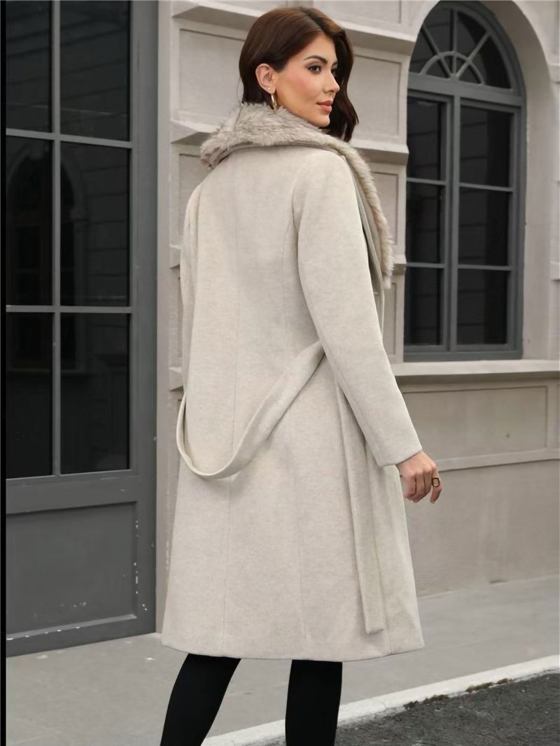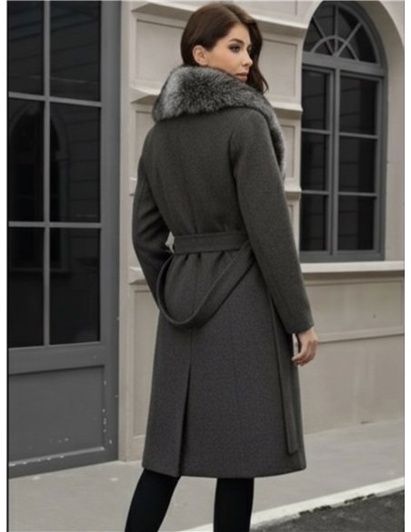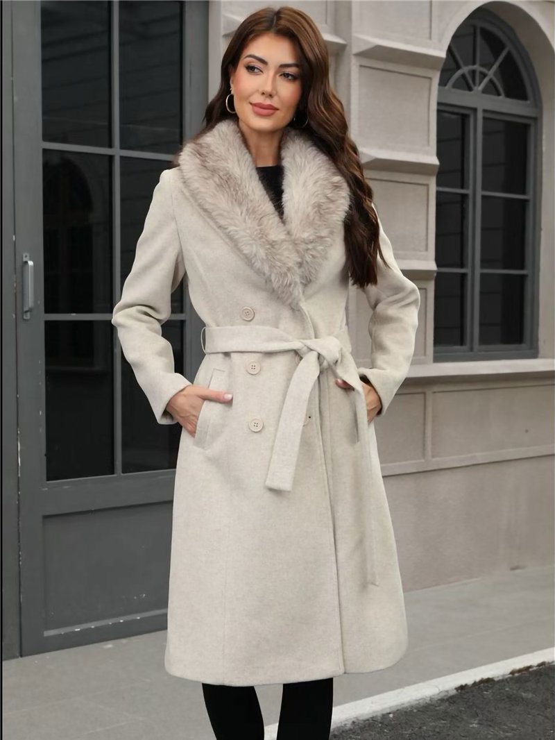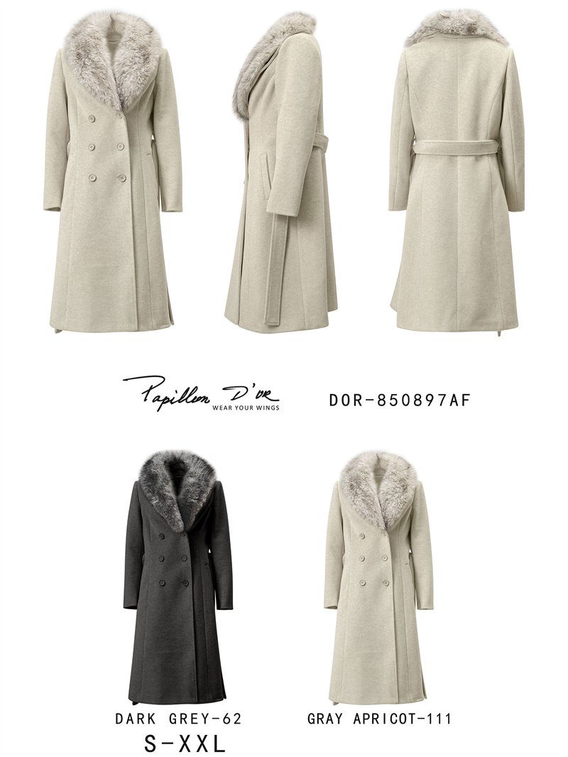 Detalles de abrigo largo paño doble botonadura cuello pelo MF-JHD-850897AF