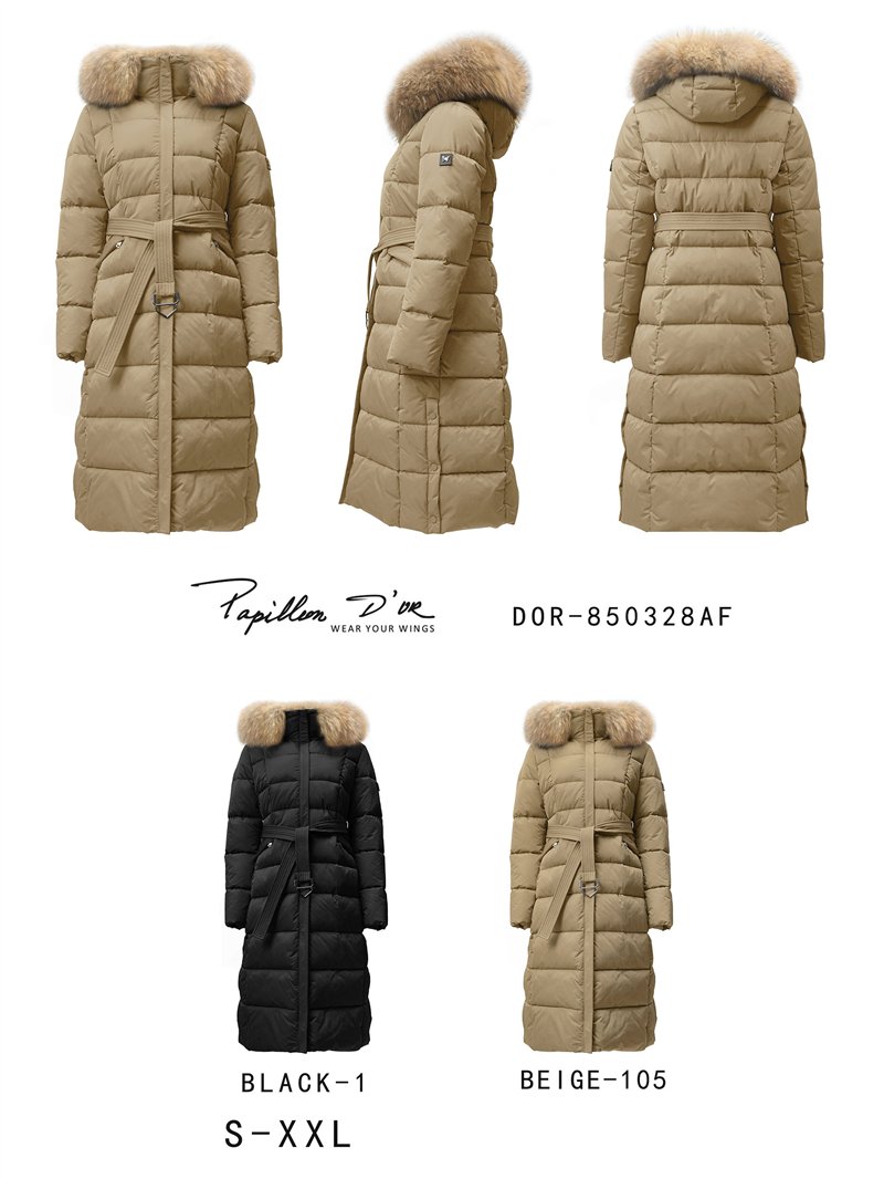 Detalles de anorak largo cinturón capucha con pelo MF-JHD-850328AF