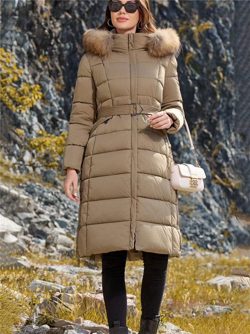 Anorak largo cinturón capucha con pelo Anorak largo cinturón capucha con pelo Anorak largo cinturón capucha con pelo