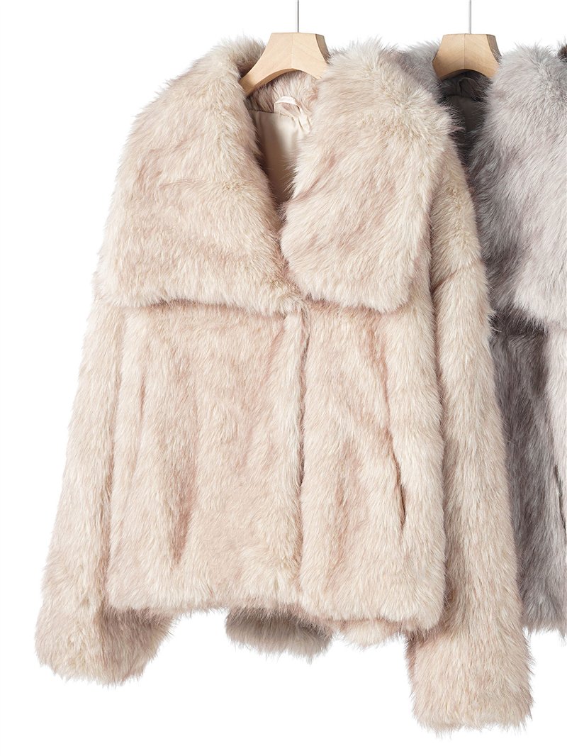 Chaqueta corta de efecto pelo con cuello solapa y tacto suave.