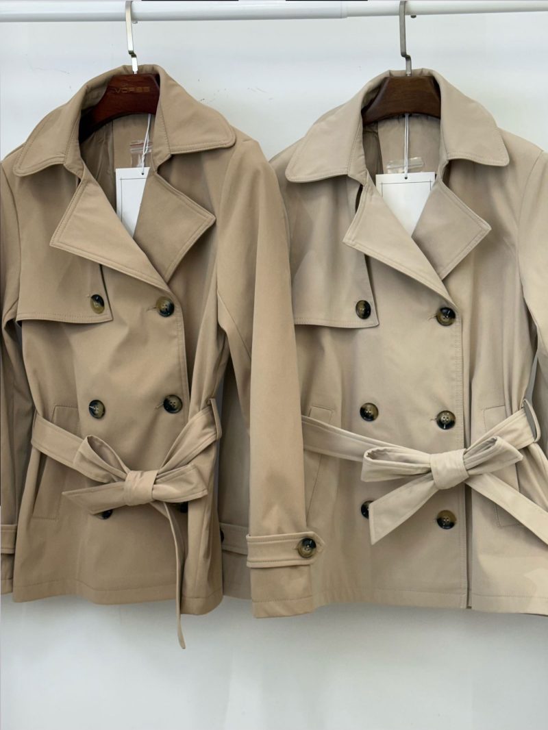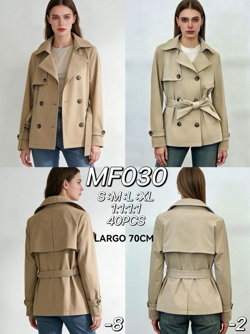 Detalles de trench corto cruzado con cinturón MF-MF030