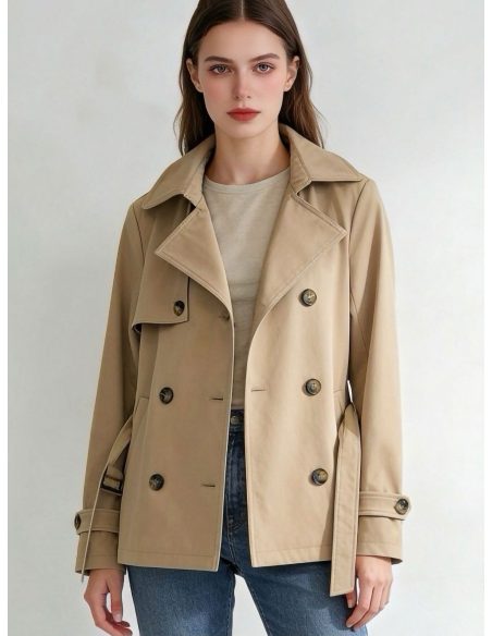 Trench corto cruzado con cinturón