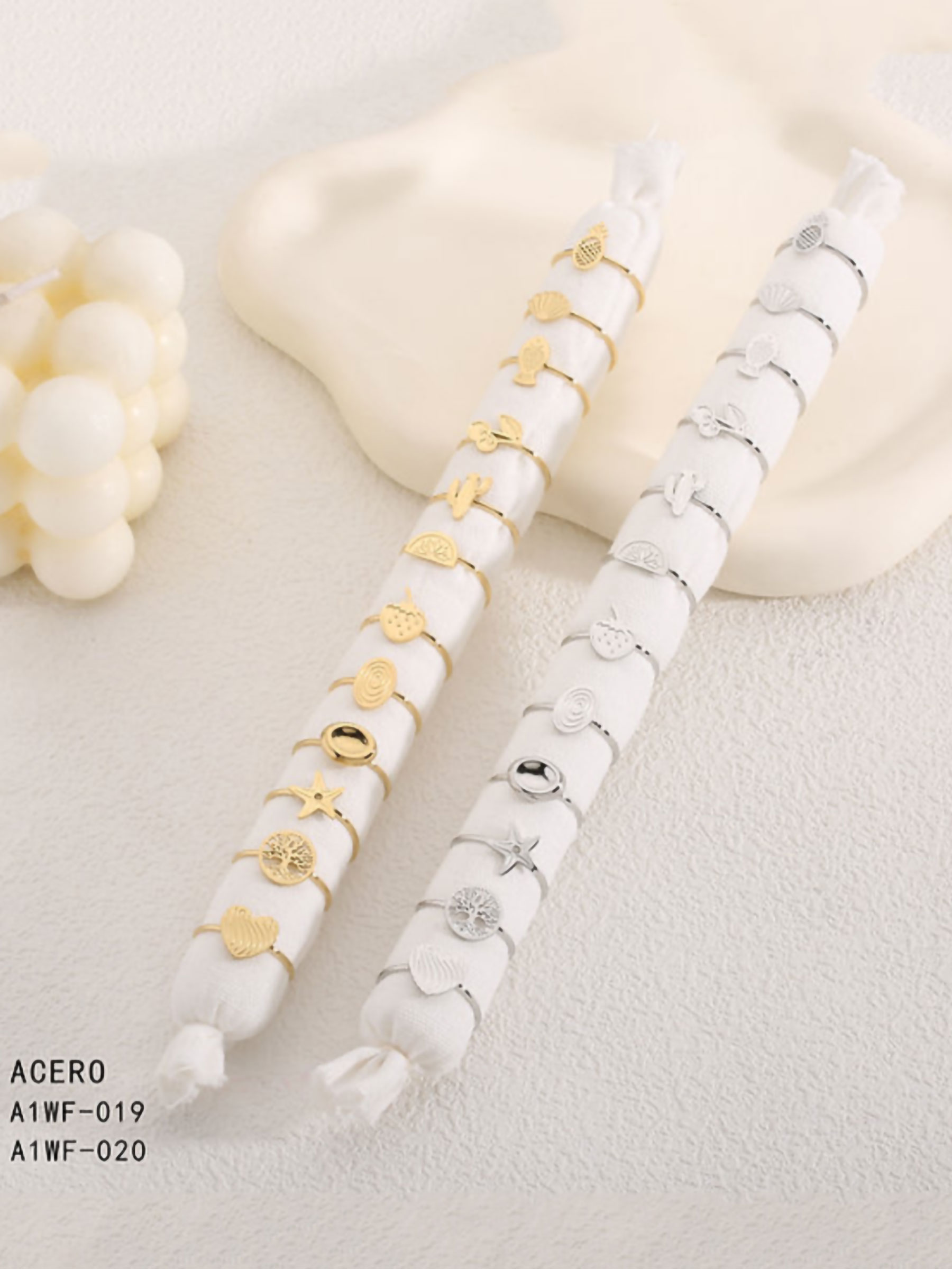 Detalles de conjunto de 12 anillos - acero inoxidable BS-WF019-WF020