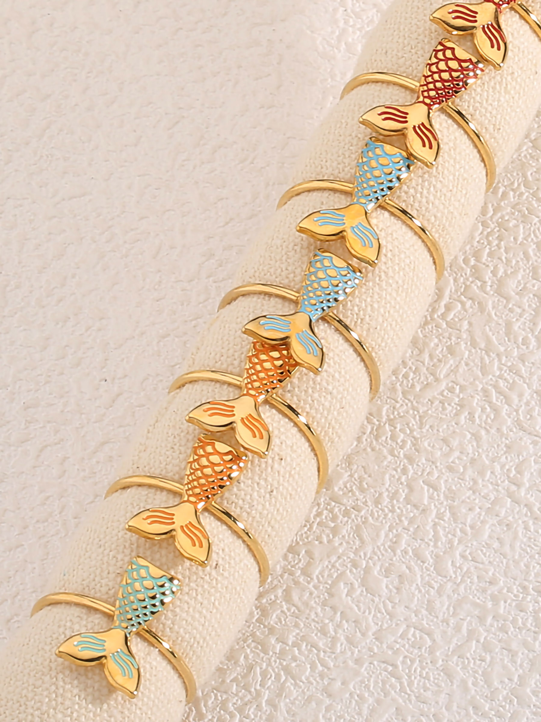 Conjunto de 12 anillos cola de sirena esmaltados - Acero inoxidable