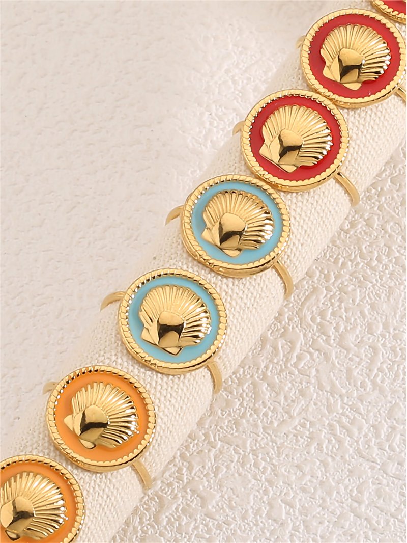 Conjunto de 12 anillos conchas esmaltados - Acero inoxidable