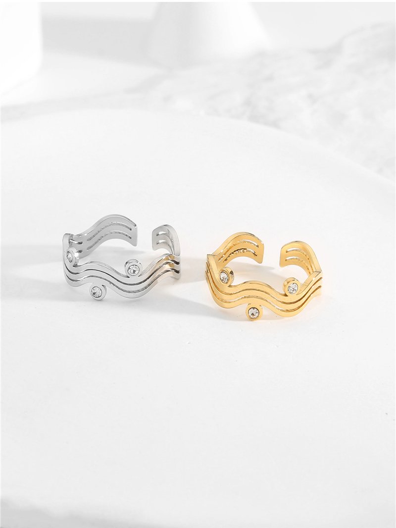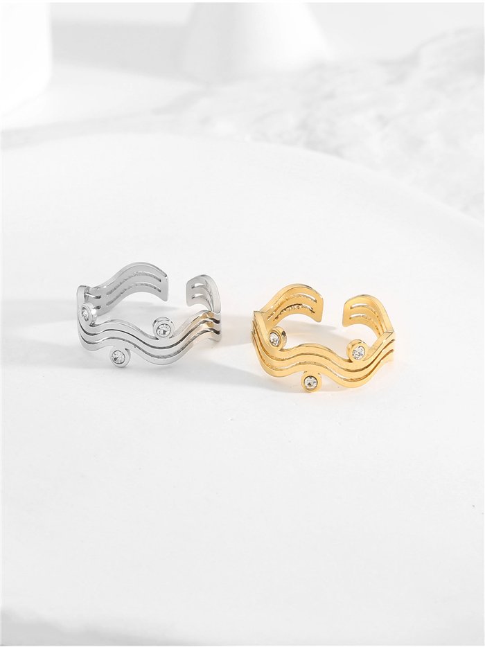 Detalles de anillo abierto olas con circonitas - acero inoxidable BS-LY95202-LY95203