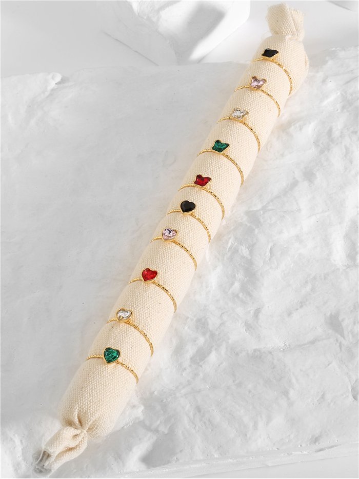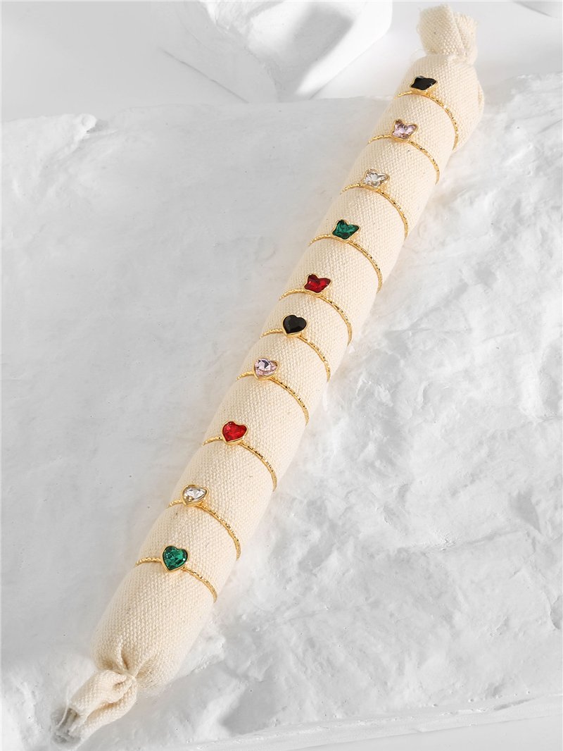 Conjunto de 10 anillos con pedrería - Acero inoxidable - Expositor incluido