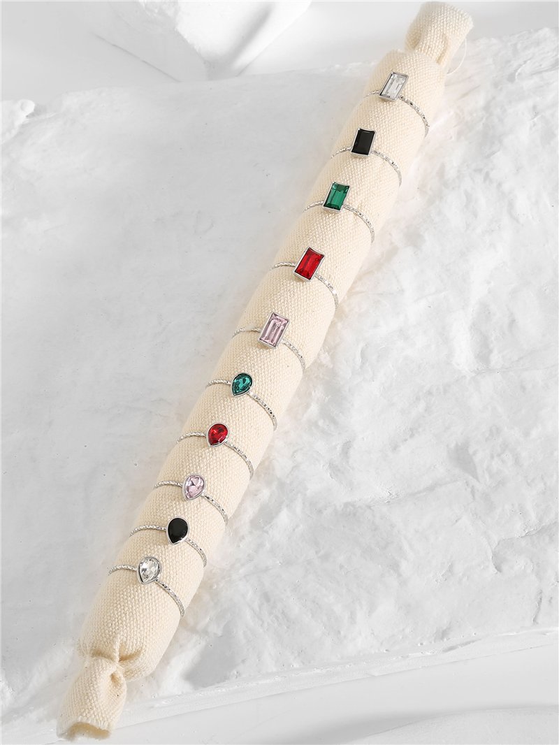 Conjunto de 10 anillos con pedrería - Acero inoxidable - Expositor incluido