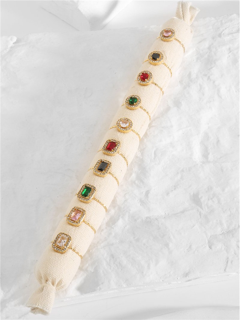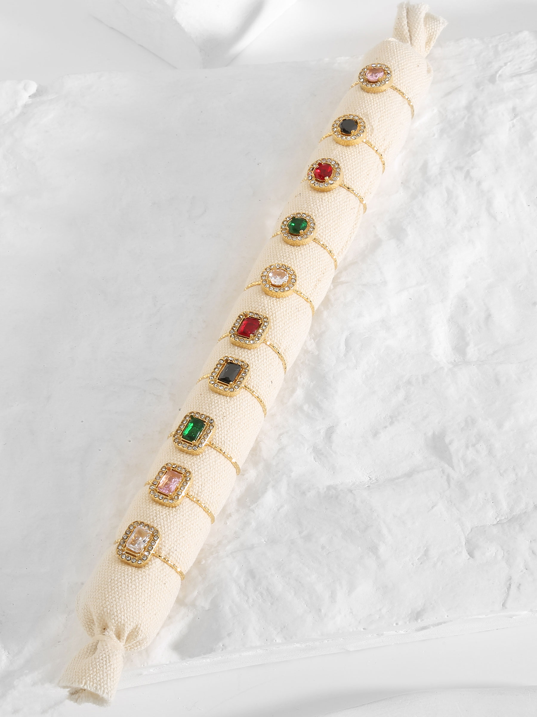 Conjunto de 10 anillos con pedrería - Acero inoxidable - Expositor incluido
