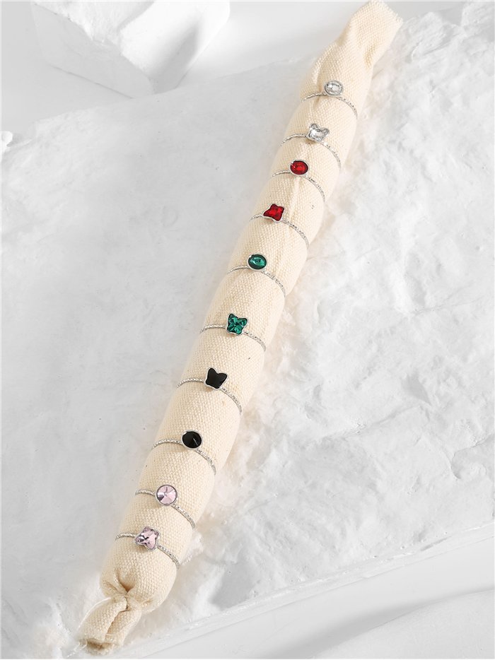Conjunto de 10 anillos con pedrería - Acero inoxidable - Expositor incluido