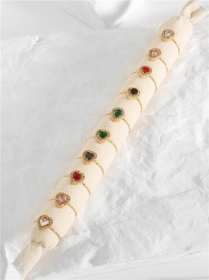 Conjunto de 10 anillos con pedrería - Acero inoxidable - Expositor incluido