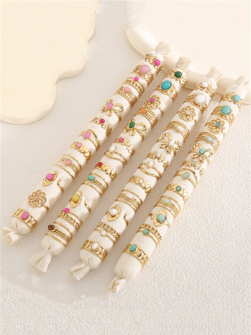 Detalles de conjunto de 12 anillos efecto piedra - acero inoxidable - expositor incluido BS-LXZ8220