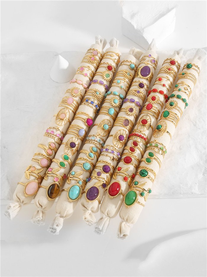 Detalles de conjunto de 12 anillos efecto piedra - acero inoxidable - expositor incluido BS-LY95235
