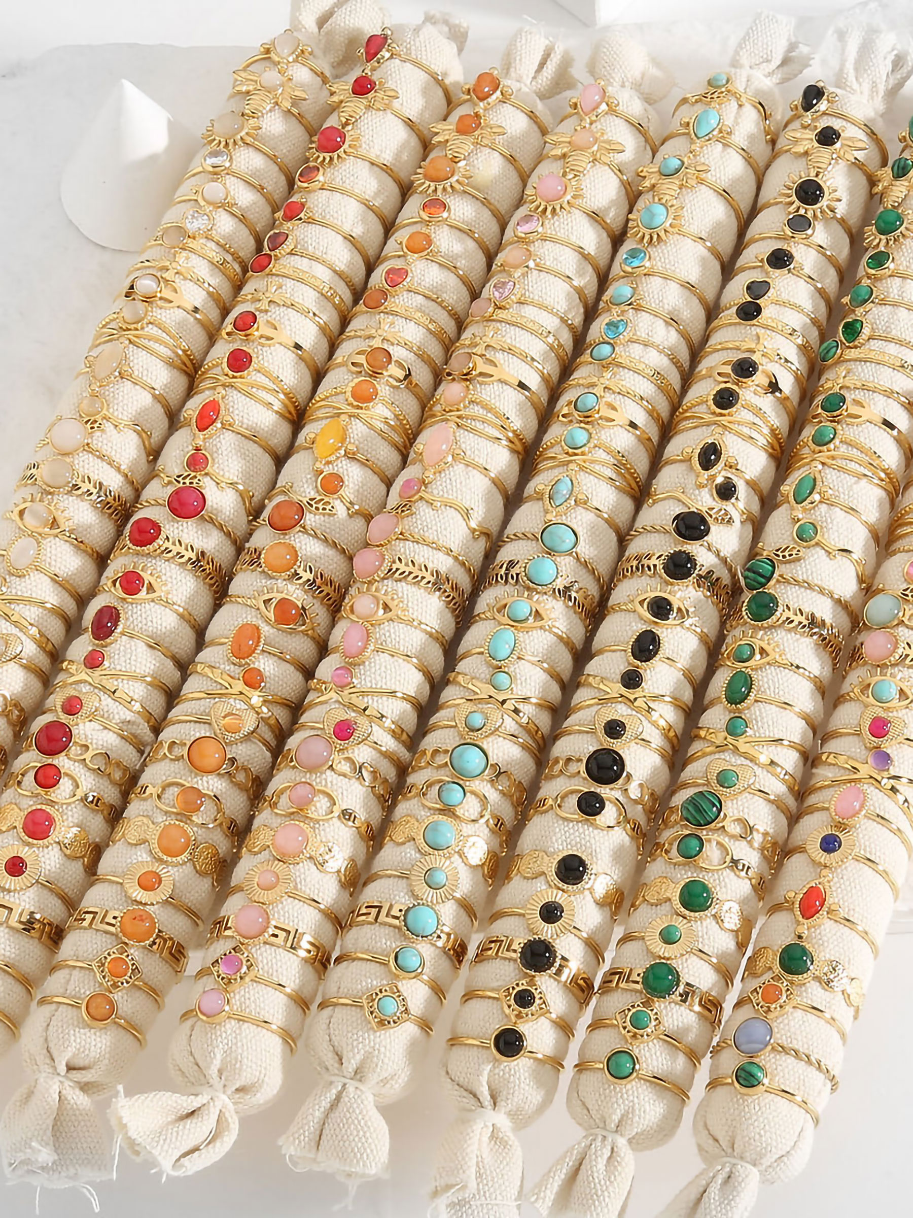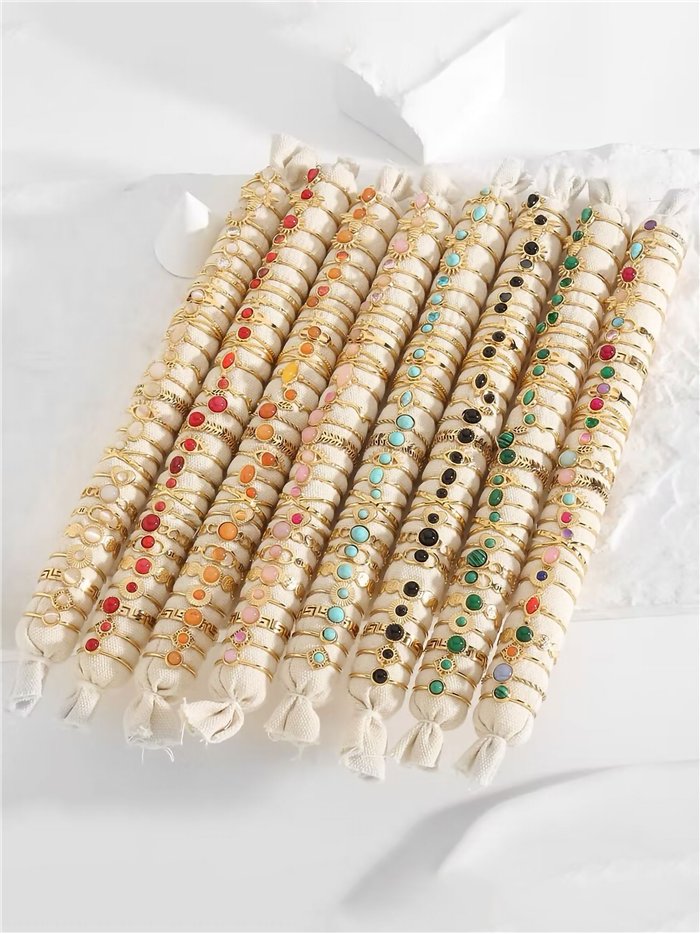Detalles de conjunto de anillos efecto piedra - acero inoxidable - expositor incluido BS-LY95241