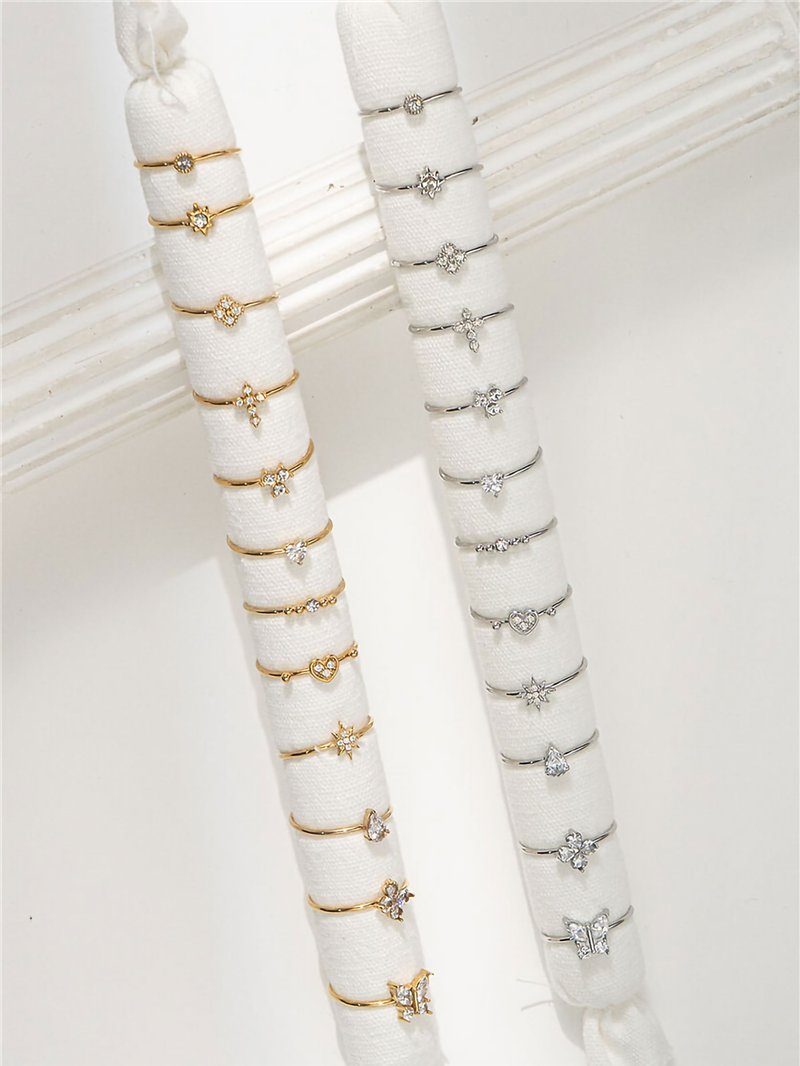 Detalles de conjunto de 12 anillos con circonitas - acero inoxidable - expositor incluido BS-WF714-WF715