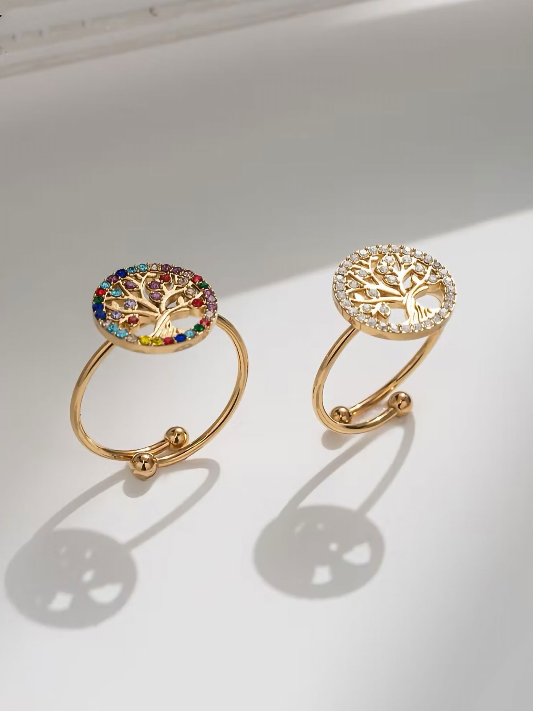 Detalles de anillo árbol de la vida con circonitas - acero inoxidable BS-WF672-WF673