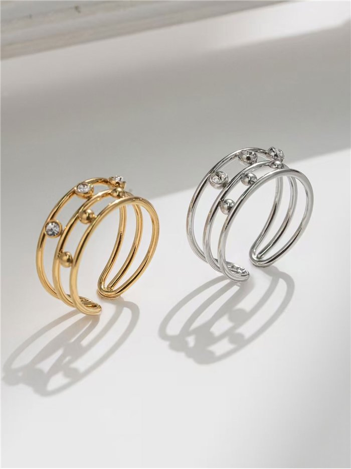 Detalles de anillo triple aros con circonitas - acero inoxidable BS-WF362-WF363