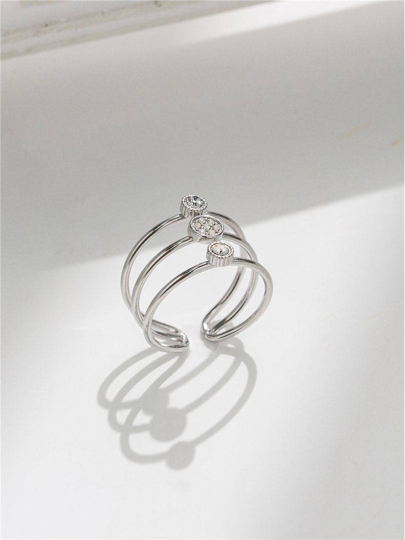 Anillo de acero inoxidable con triple aro con circonitas.