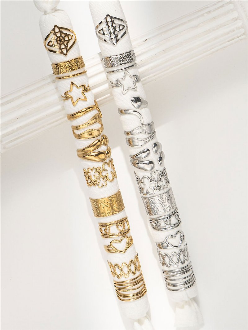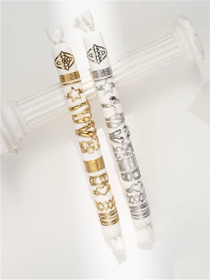 Detalles de conjunto de 12 anillos geométricos - acero inoxidable - expositor incluido BS-WF698-WF699