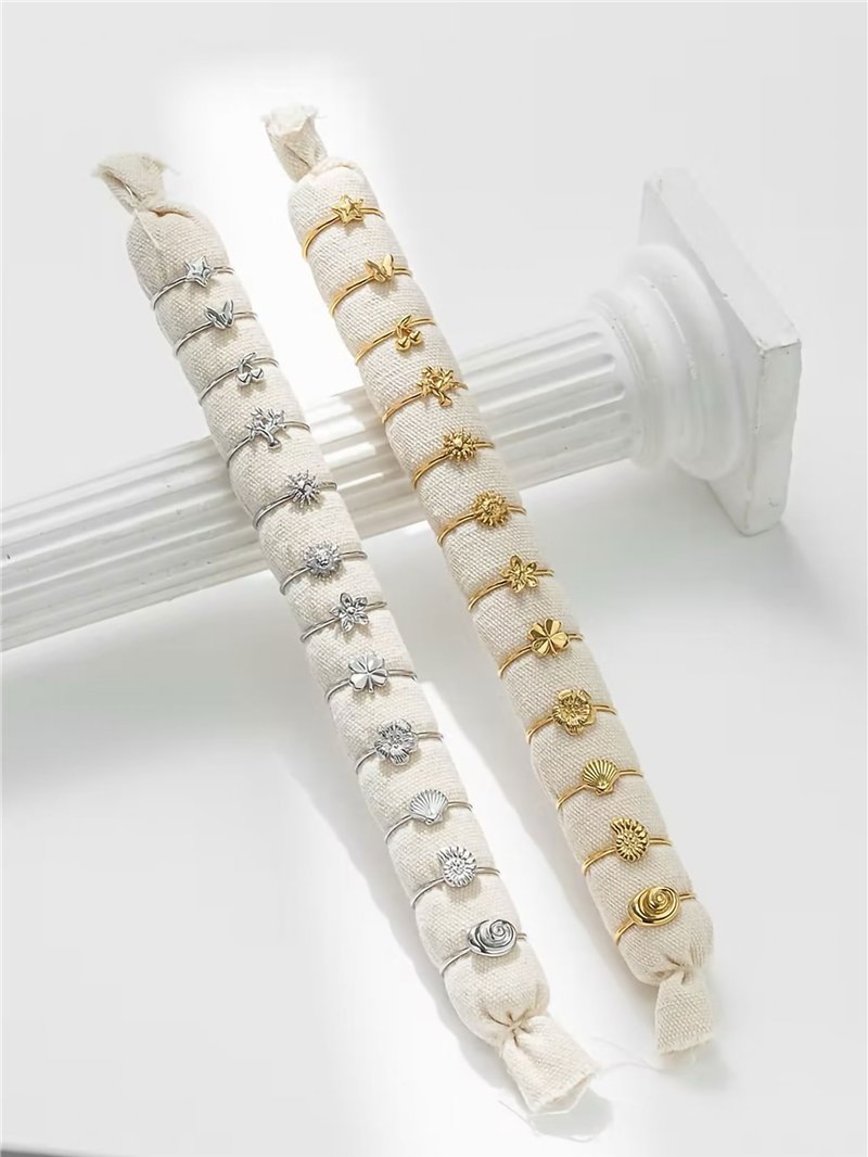 Detalles de conjunto de 12 anillos - acero inoxidable - expositor incluido BS-DH62829-DH62830