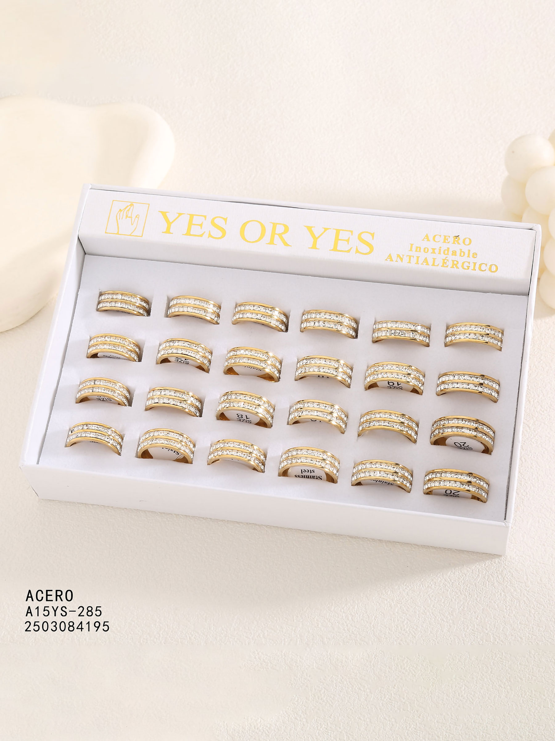 Detalles de conjunto de 24 anillos doble aros con circonitas - expositor incluido BS-YS285-YS287