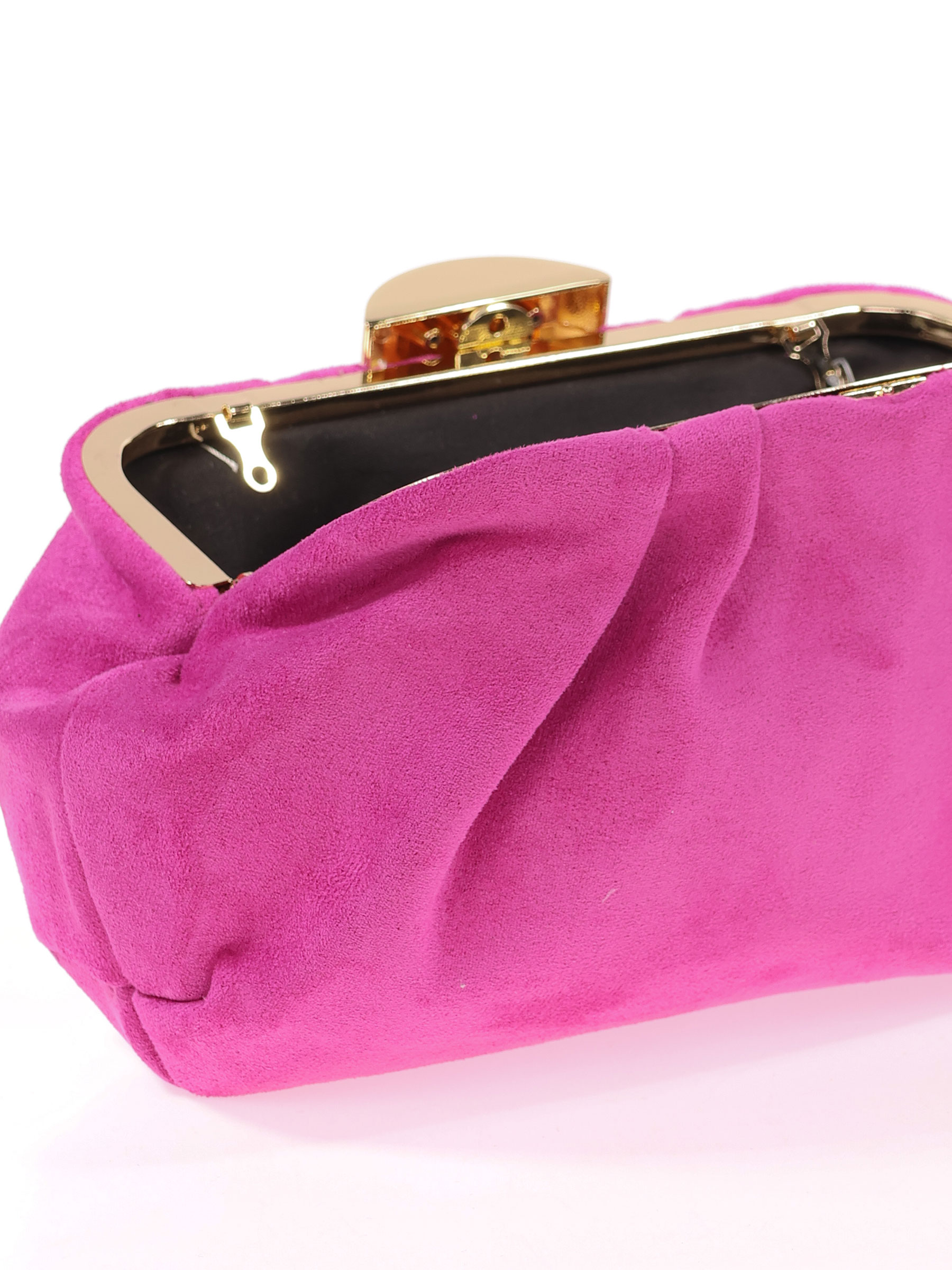 Bolso de fiesta. Efecto ante. Asa de hombro en cadena. Forro con bolsillo interior. Cierre metálico dorado.