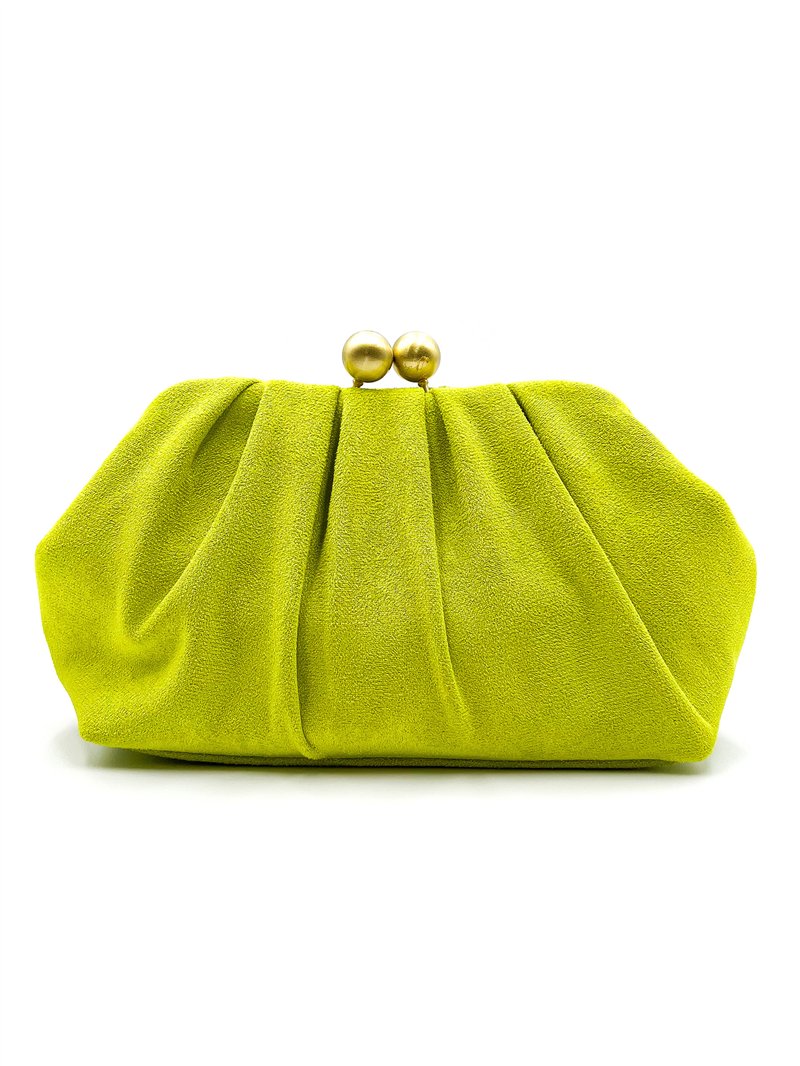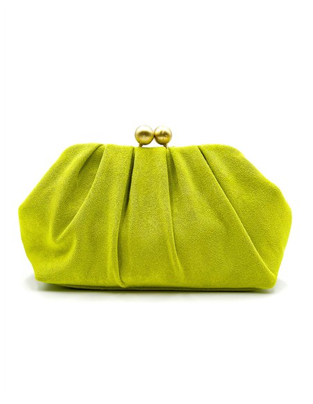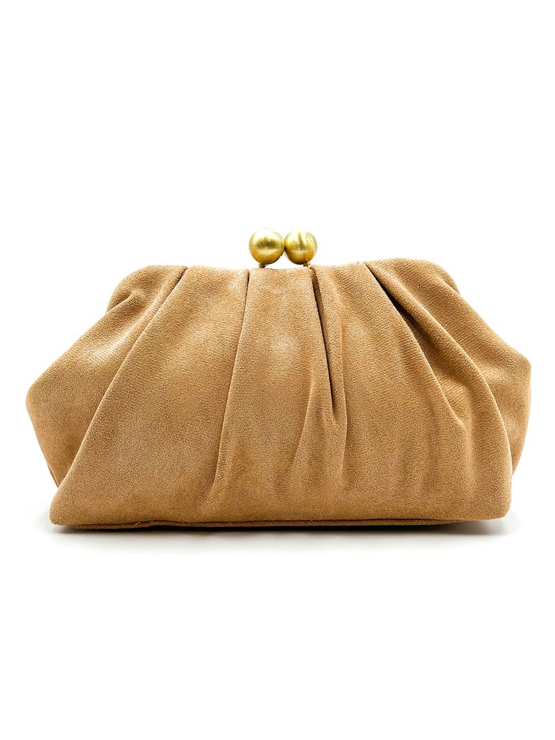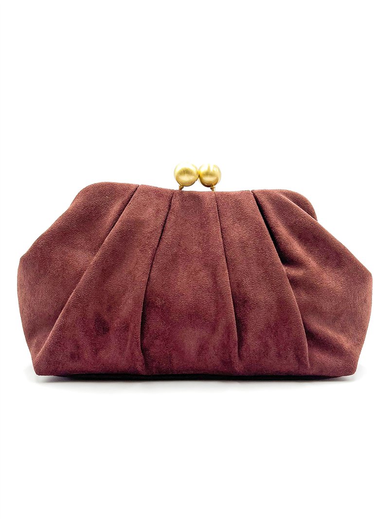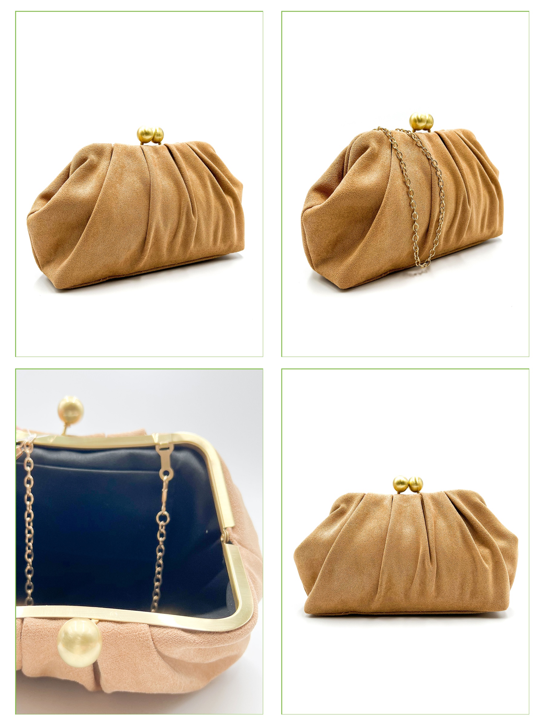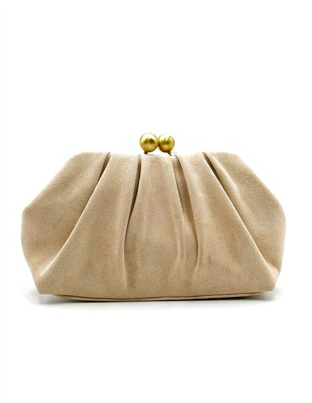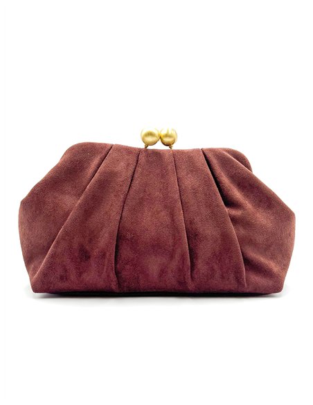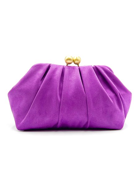 Cartera de fiesta. Efecto ante suave. Diseño fruncido en el frontal. Cierre metálico de bolas. Tacto agradable.