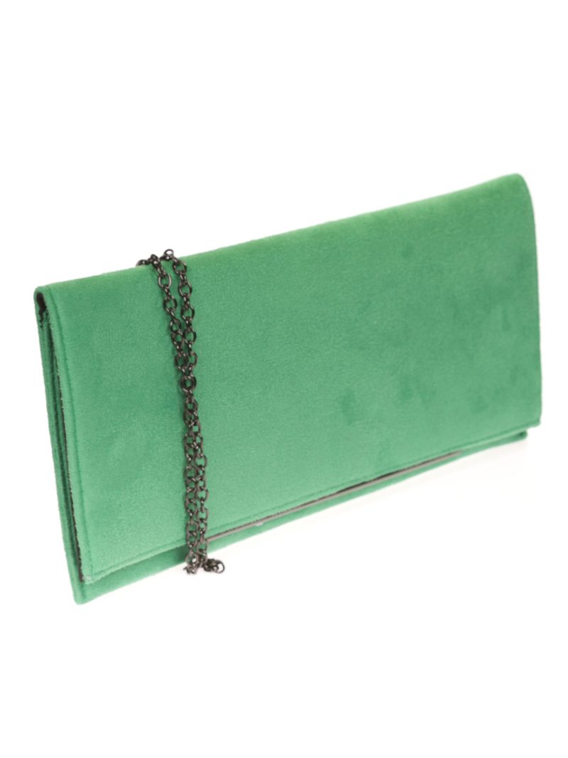 Bolso de fiesta. Efecto ante. Asa de hombro en cadena. Forro con bolsillo interior. Cierre mediante imán.