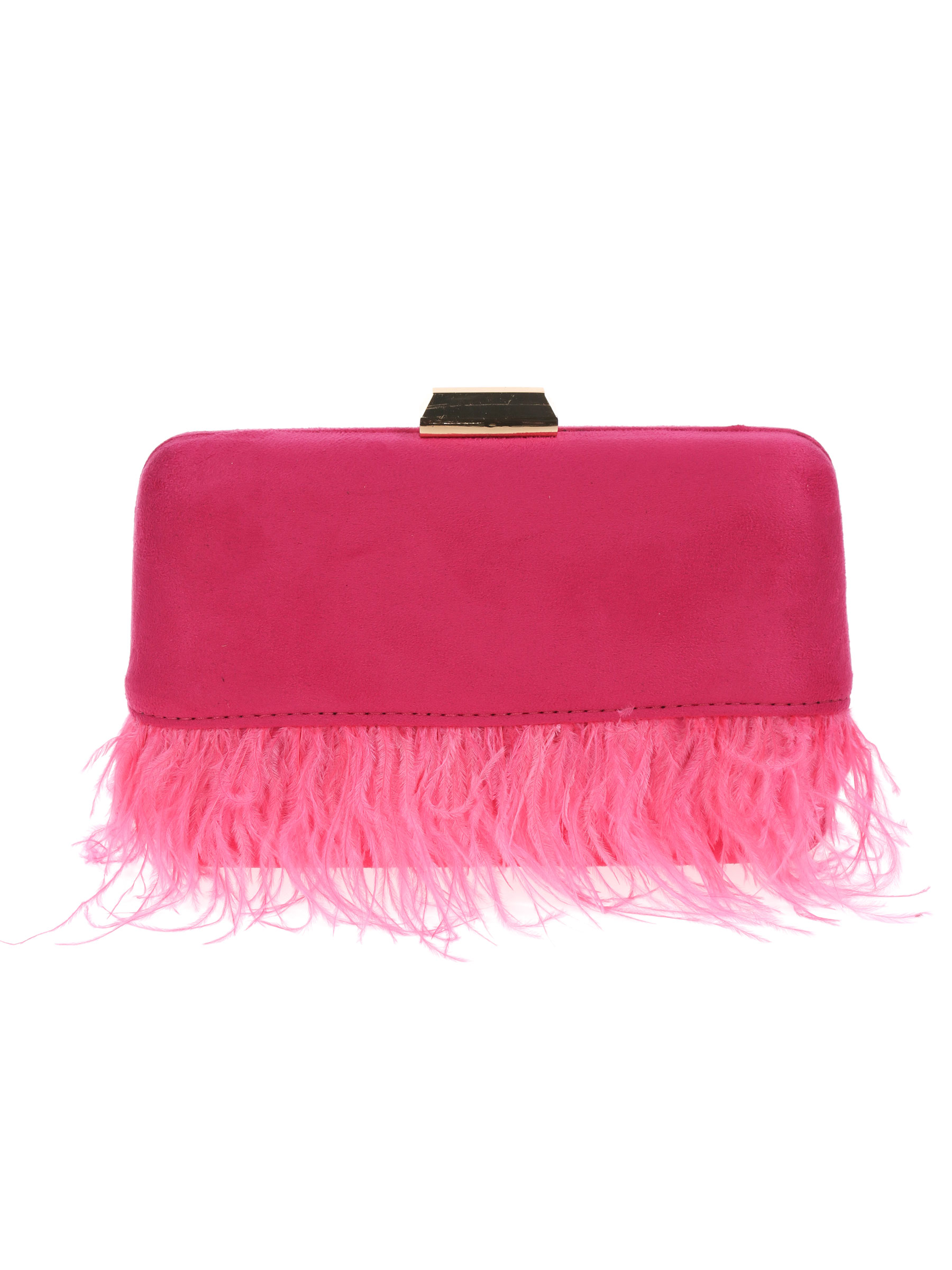 Detalles de AD-125102 FUCSIA clutch fiesta antelina plumas