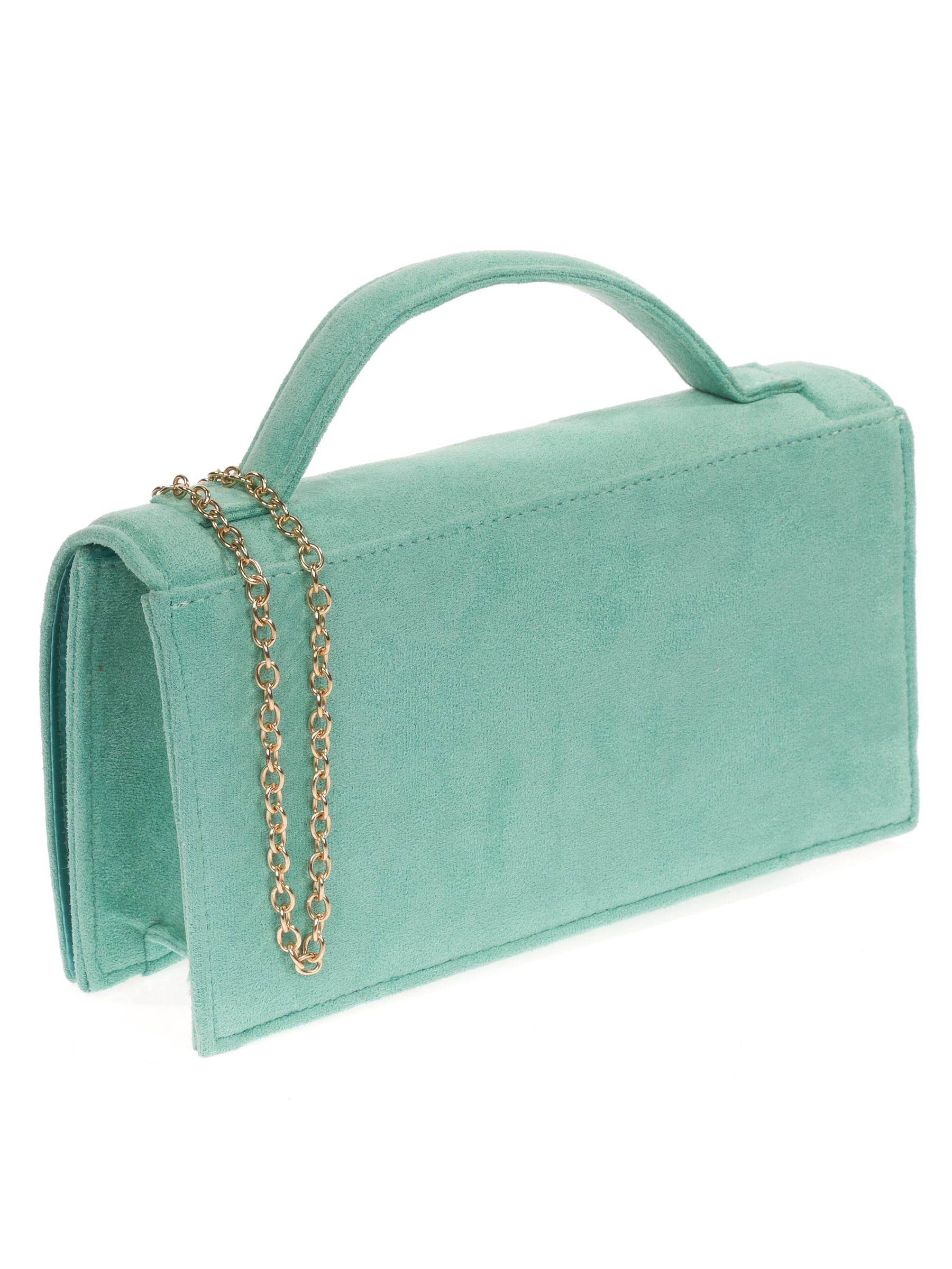 Bolso de fiesta. Efecto ante. Asa de hombro en cadena. Forro con bolsillo interior. Cierre mediante imán.