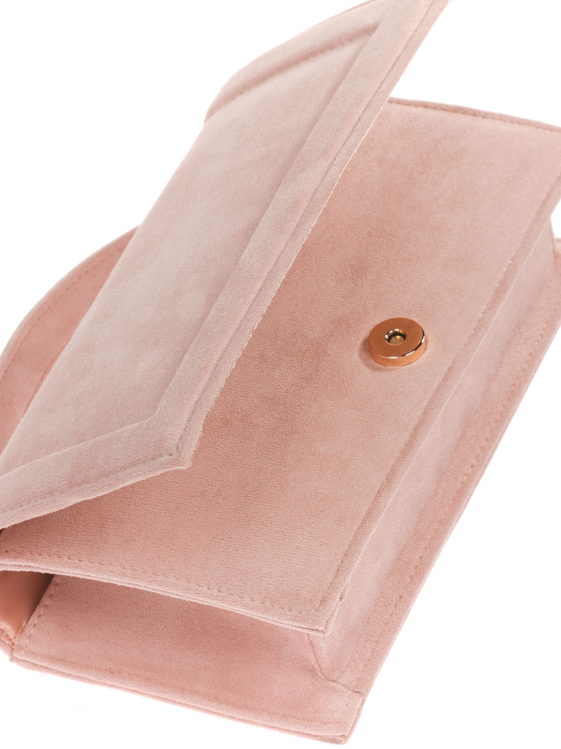 Bolso de fiesta. Efecto ante. Asa de hombro en cadena. Forro con bolsillo interior. Cierre mediante imán.