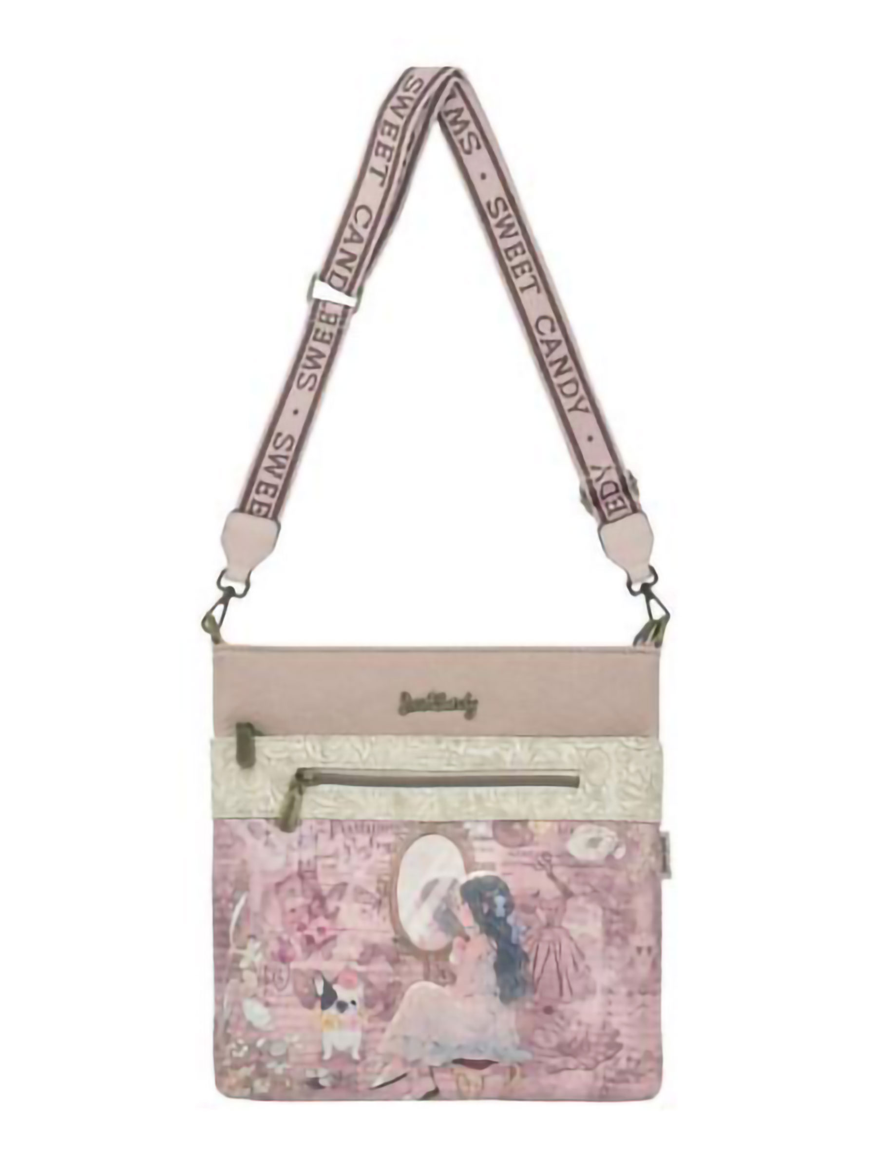Bandolera estampada. Bolsillo en la parte trasera con cierre mediante cremallera. Material polipiel. Asa de hombro ajustable y extraíble. Cierre mediante cremallera metálica.