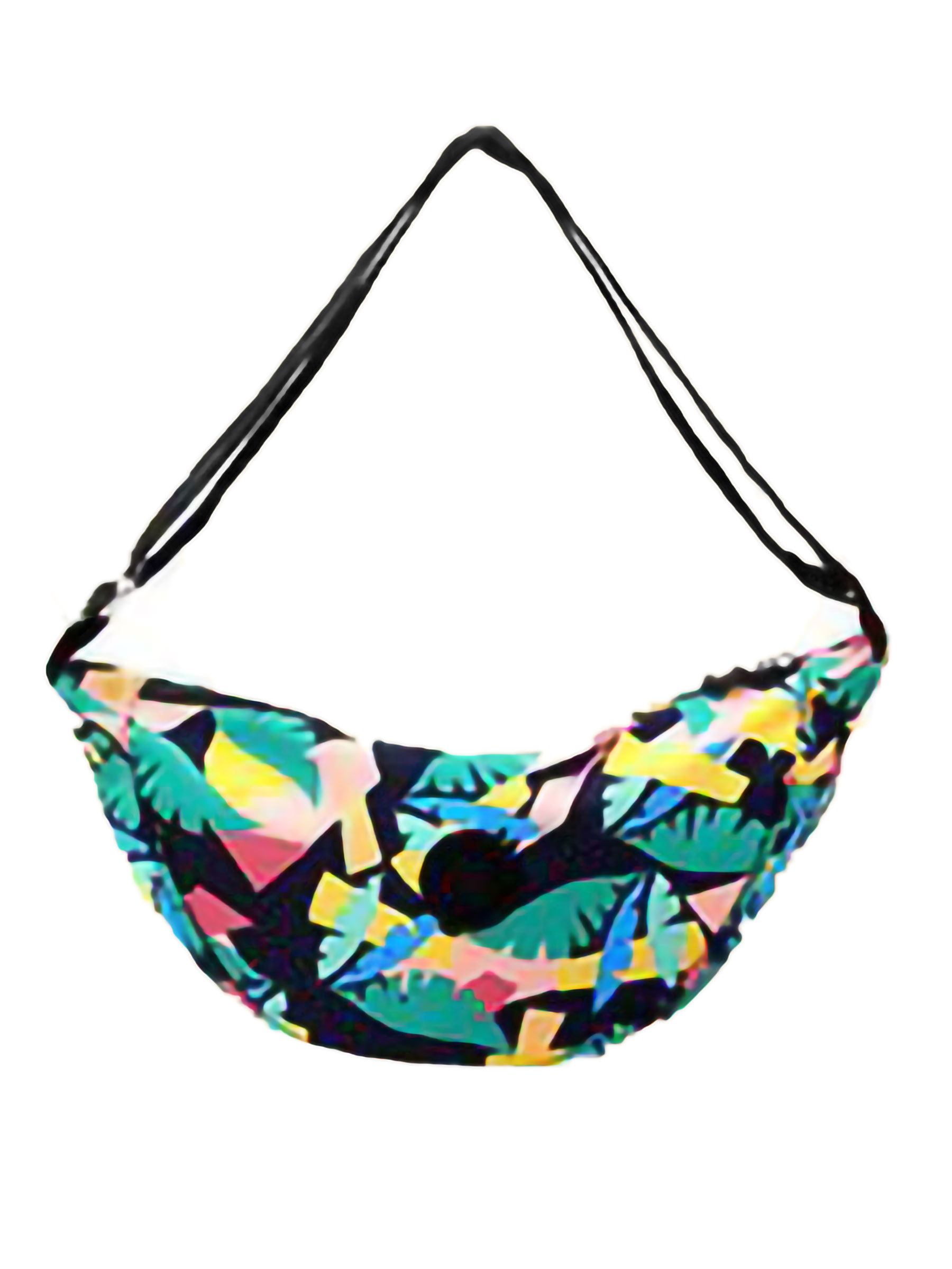 Bandolera estampada. Tejido tela. Asa de hombro ajustable. Cierre mediante cremallera metálica. Colores surtidos.