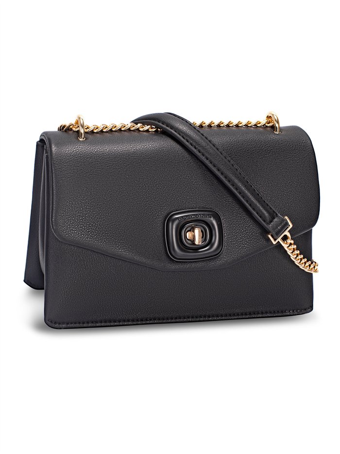 Detalles de DJ-CM7359-BLACK bolso bandolera solapa detalle metálico black