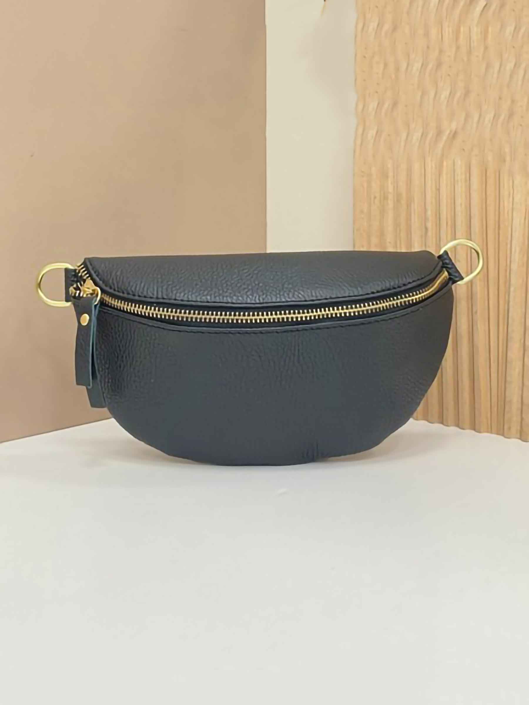 Riñonera de piel. Correa ajustable y extraíble. Cierre mediante cremallera metálica. Fabricado en Italia.