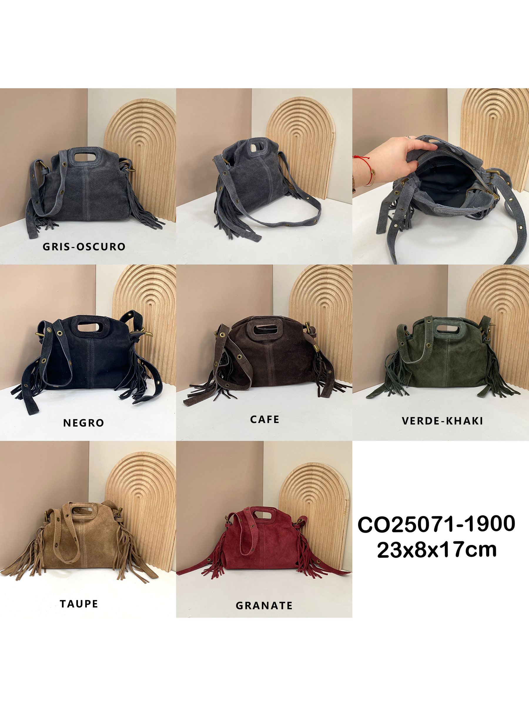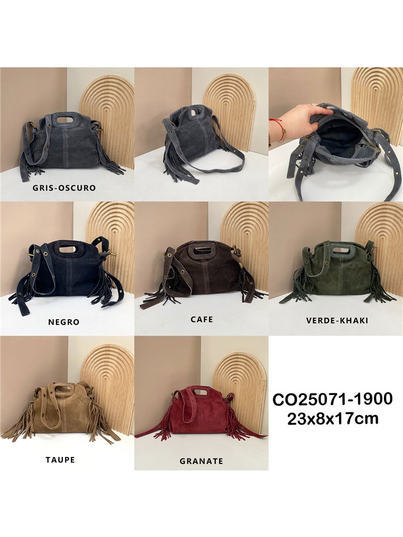 Detalles de AB-CO25071 bolso bandolera piel serraje con flecos