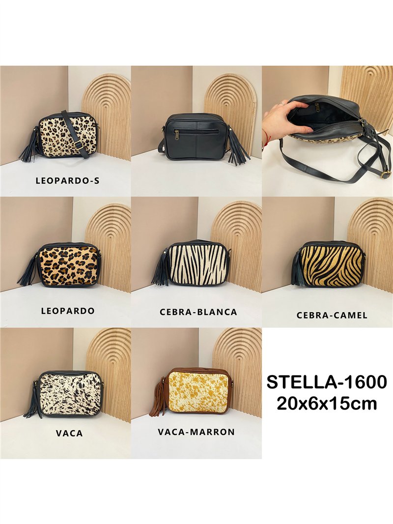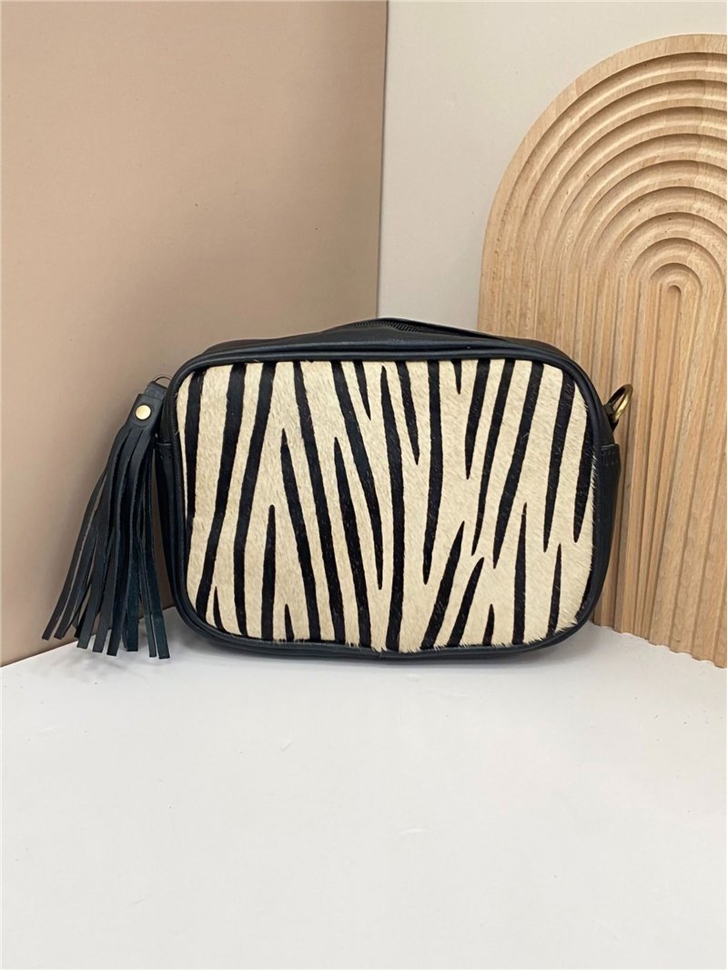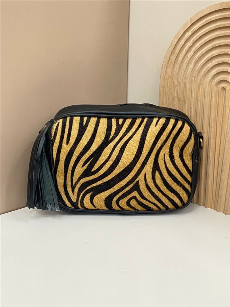 Detalles de AB-STELLA bandolera piel pelo animal print borlas.
