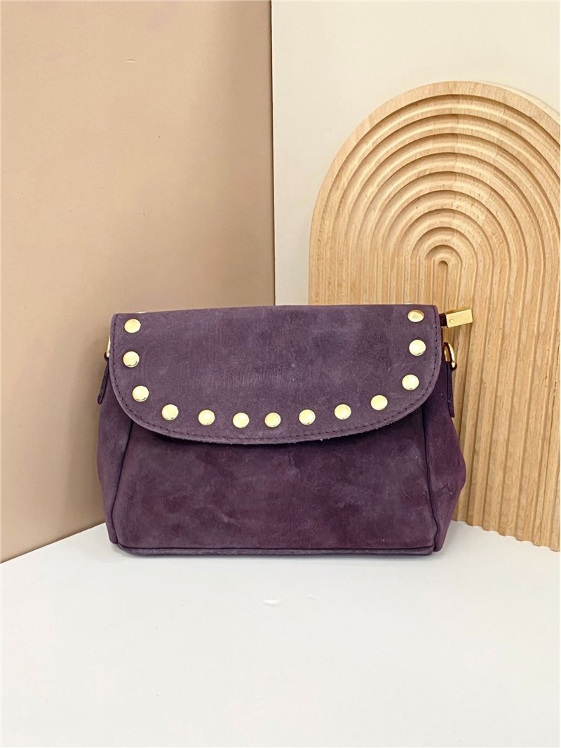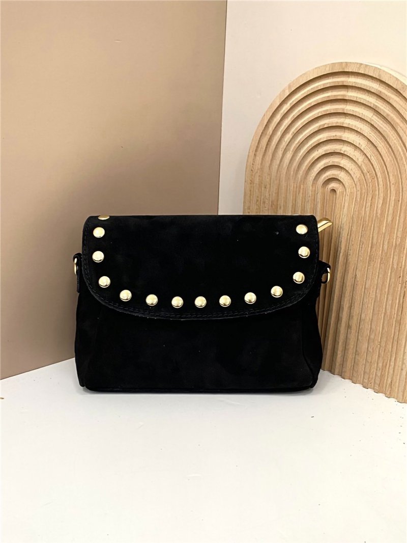 Detalles de AB-CO25088 bolso bandolera piel serraje solapa con tachas.