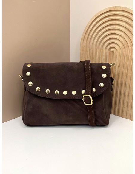 Bolso bandolera piel serraje solapa con tachas Bolso bandolera piel serraje solapa con tachas