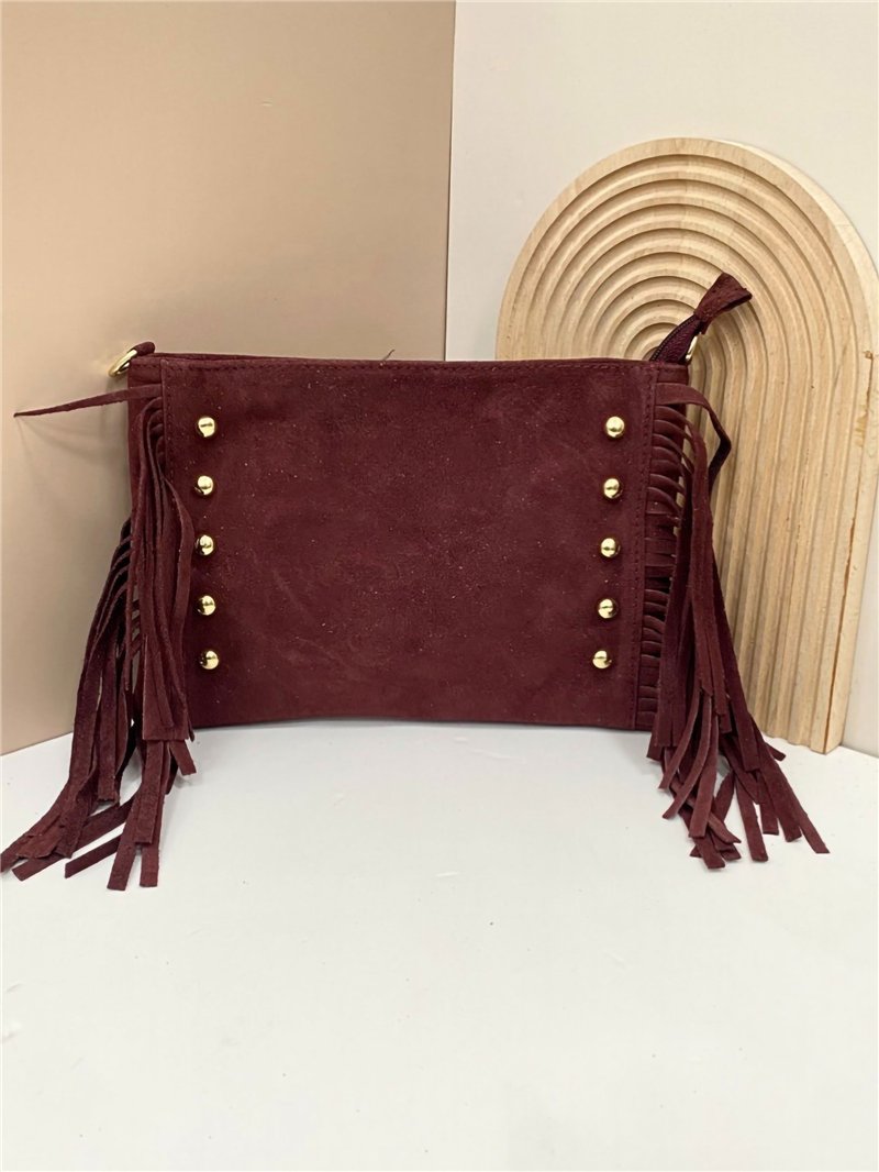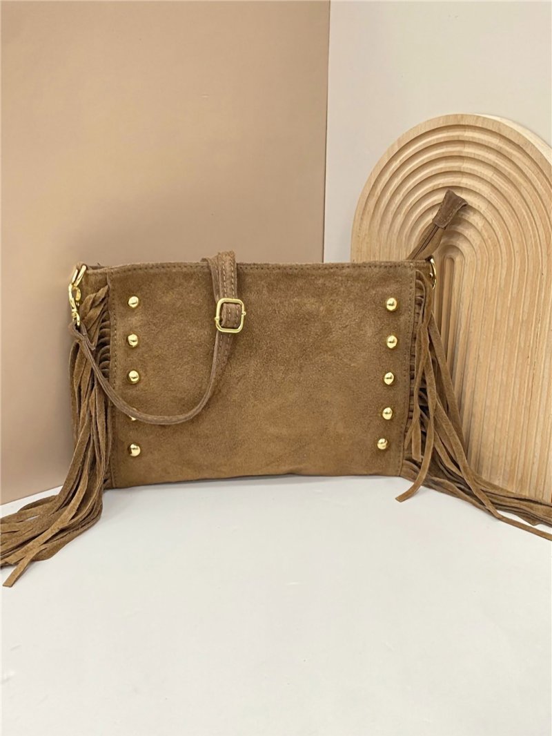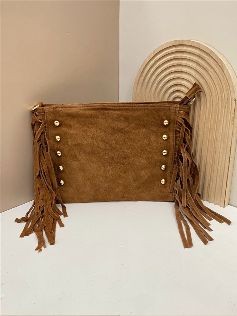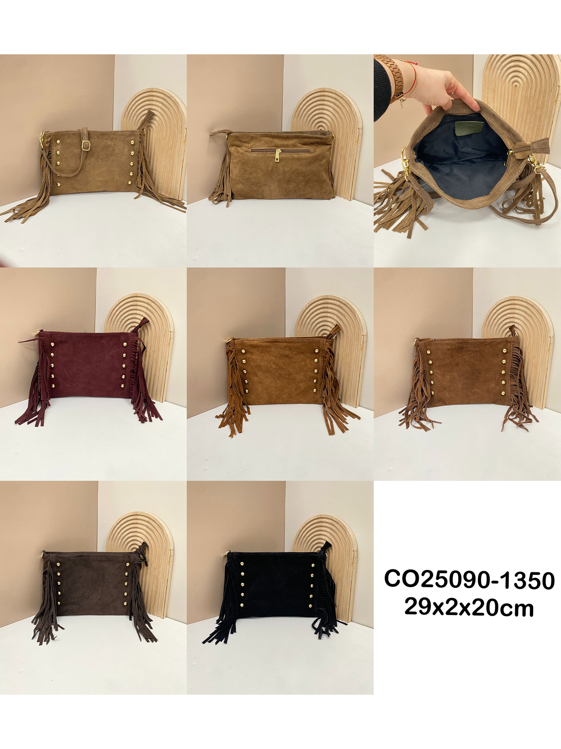 Detalles de AB-CO25090 clutch piel serraje con flecos y tachuelas.