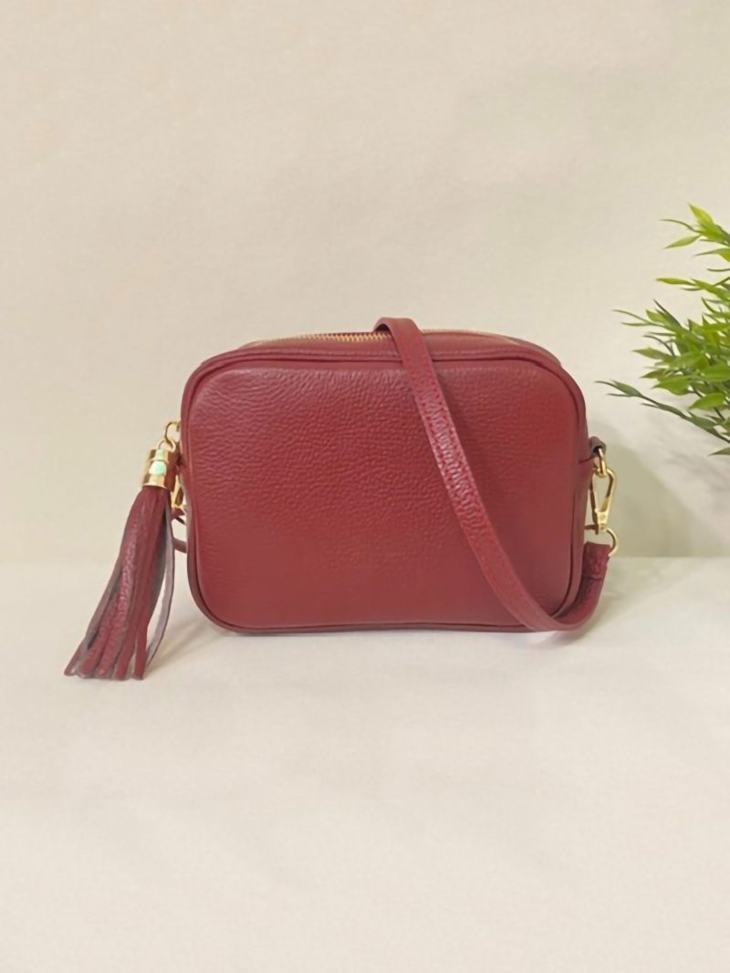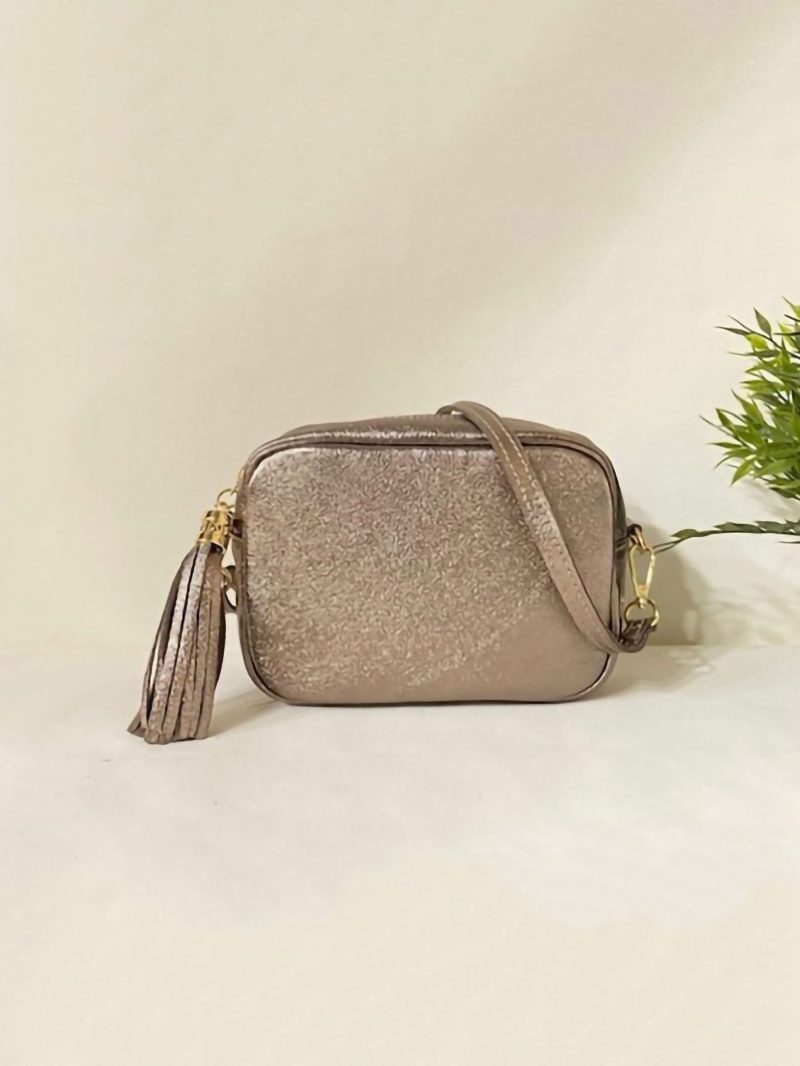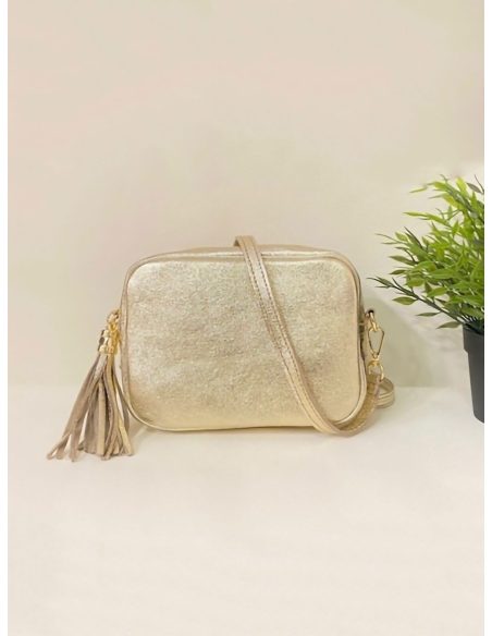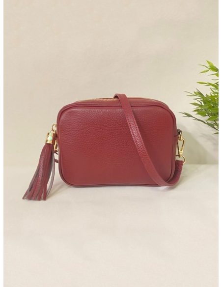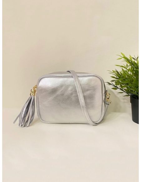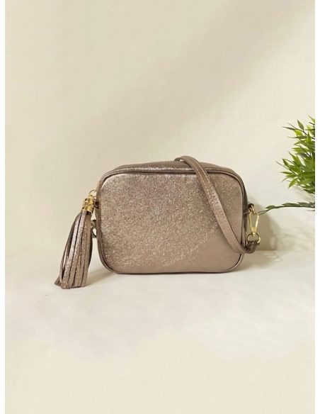 Bolso bandolera de piel con borla y cremallera