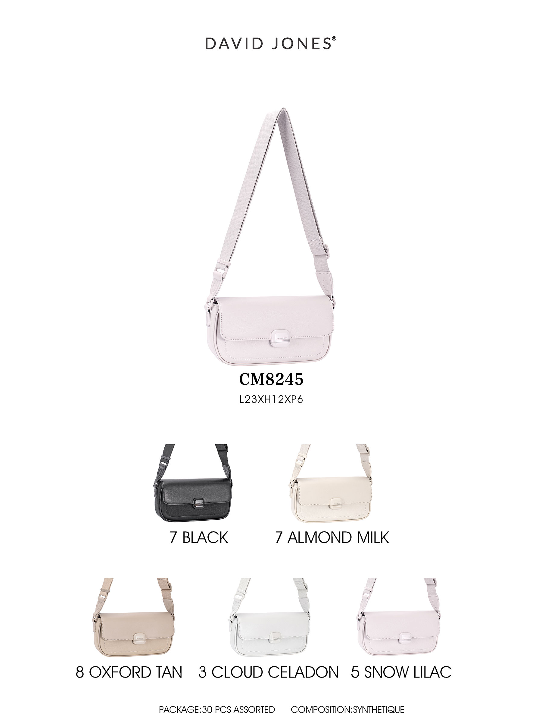 Detalles de DJ-CM8245 bolso bandolera solapa y cierre de hebilla.