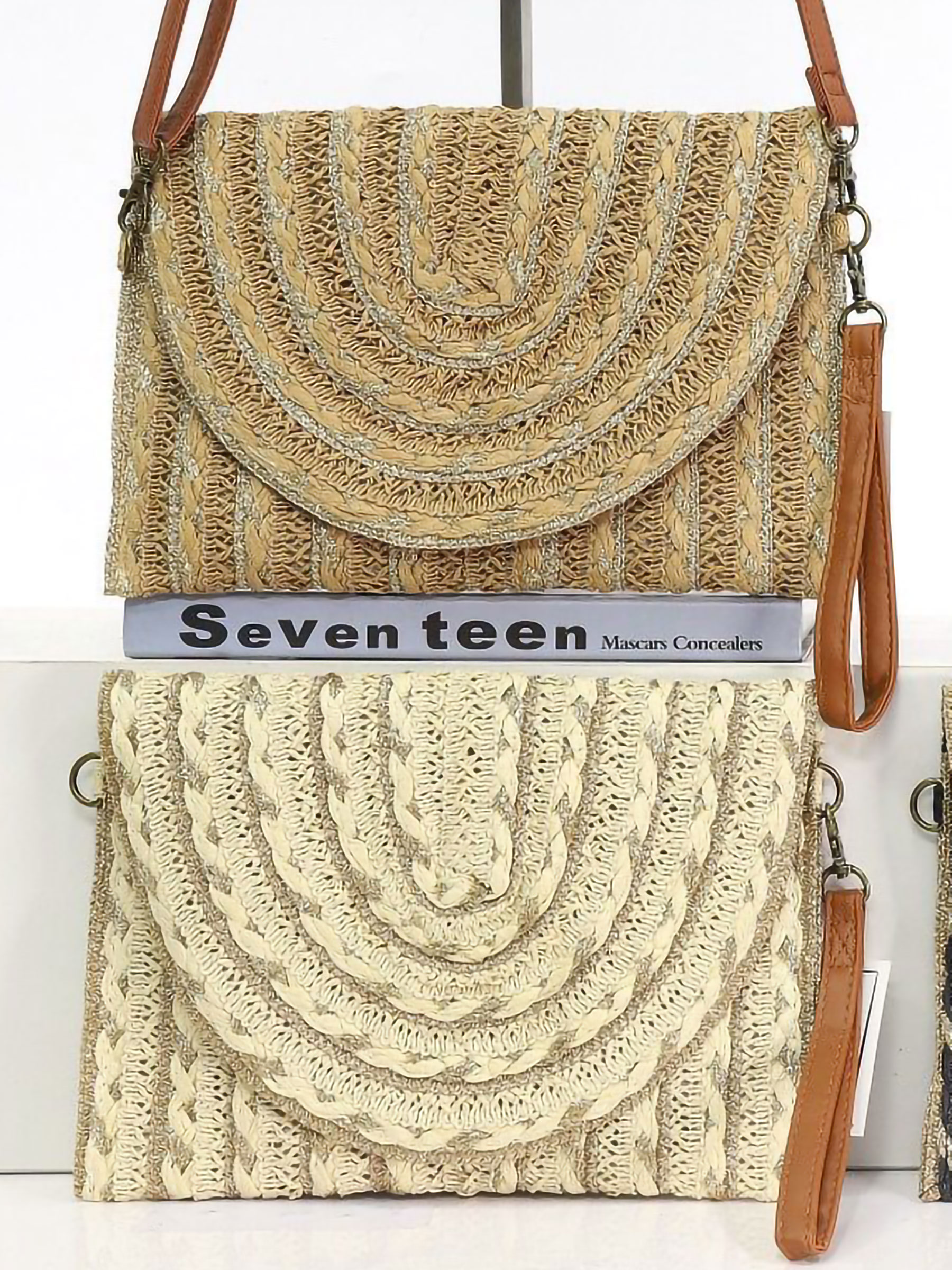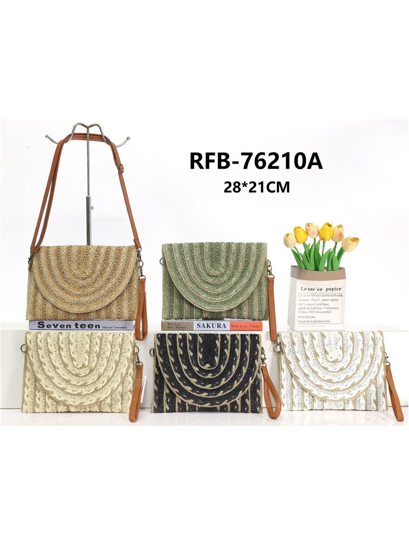 Bolso bandolera rafia textura con solapa semicircular