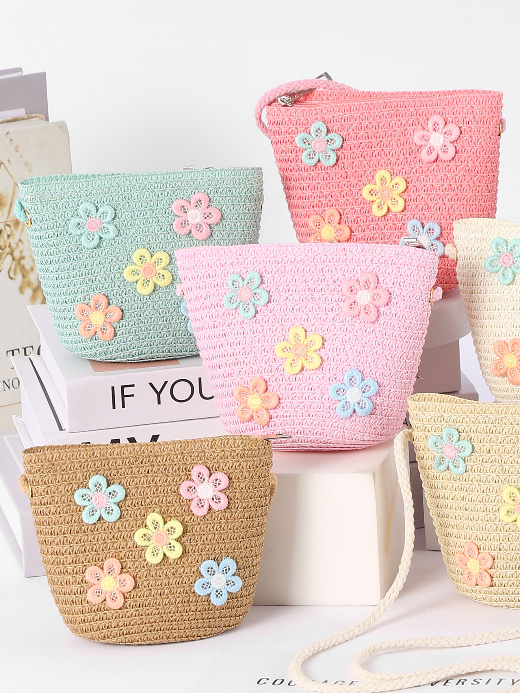 Bolso bandolera infantil rafia flores pastel