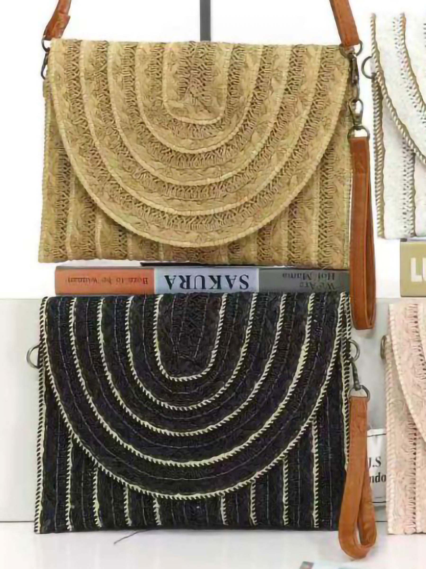 Bolso bandolera rafia boho con solapa semicircular