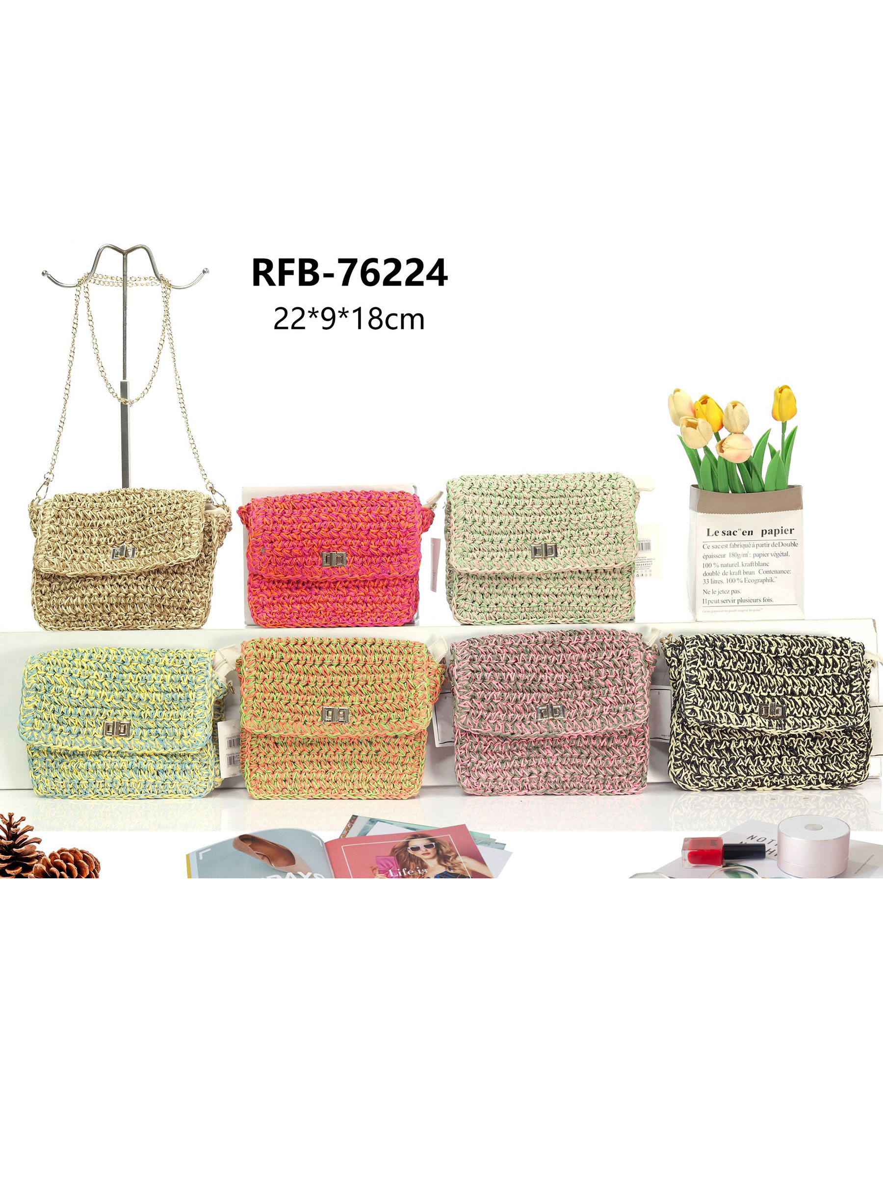 Bolso bandolera rafia trenzada con cadena