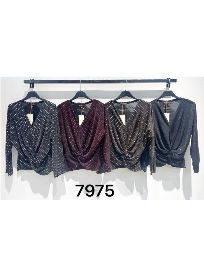 Detalles de blusa cruzada fiesta nudo frontal con glitter SP-7975