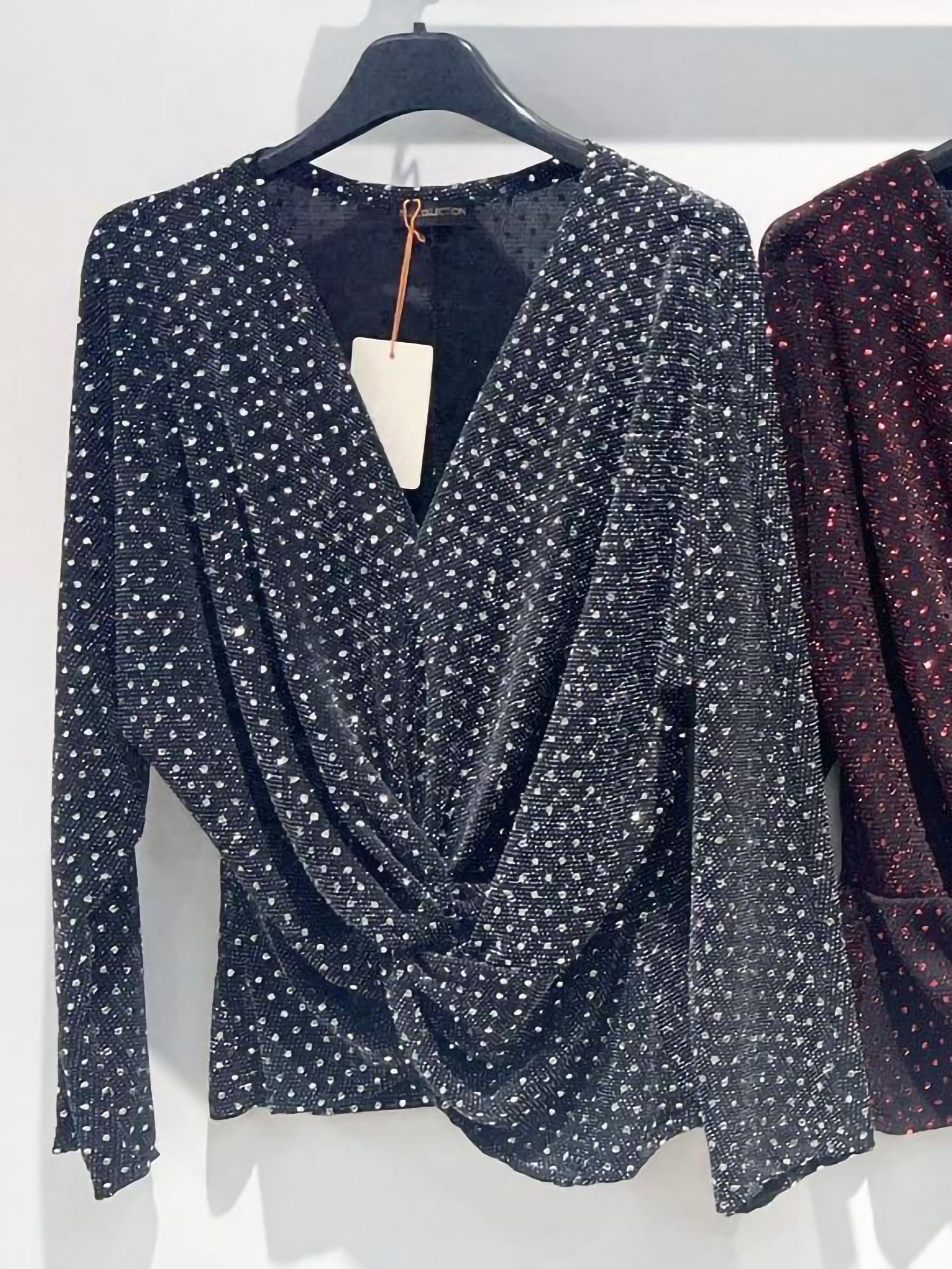 Blusa cruzada fiesta nudo frontal con glitter Blusa cruzada fiesta nudo frontal con glitter