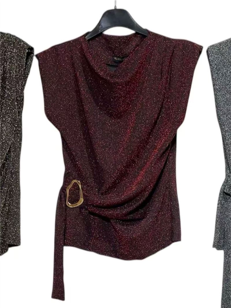 Detalles de top fiesta lurex frunces con hebilla KR-11925